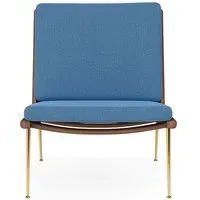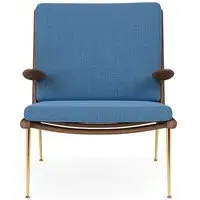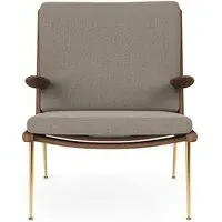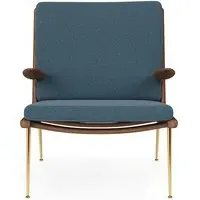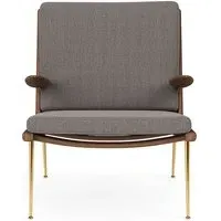 Originally created in 1956 by Hvidt & Mølgaard, the Boomerang chair is an enduring masterpiece of Danish design. Defined by its unique, handcrafted wooden frame, the Boomerang is also composed of a slender brass base and a comforting upholstered seat and back. Ideal for relaxation, its laid-back streamlined design comes with our without petite pointed armrests. An eye-catching mid-century piece for any home, the Boomerang is perfect for placing in a living room or bedroom. Available in a wide range of fabrics and wood finishes. For expert advice and for information on what fabrics are available, please email sales@hollowaysofludlow.com