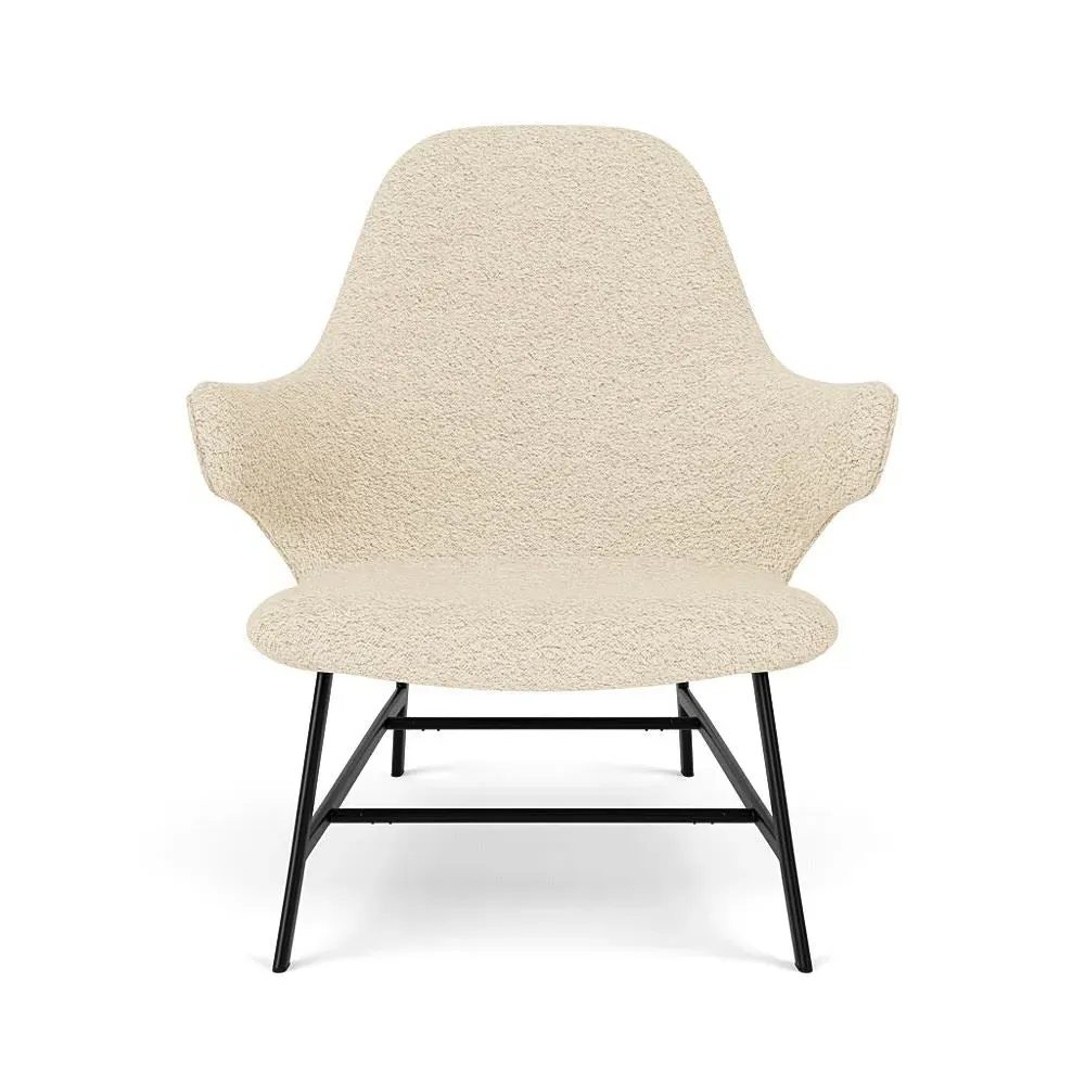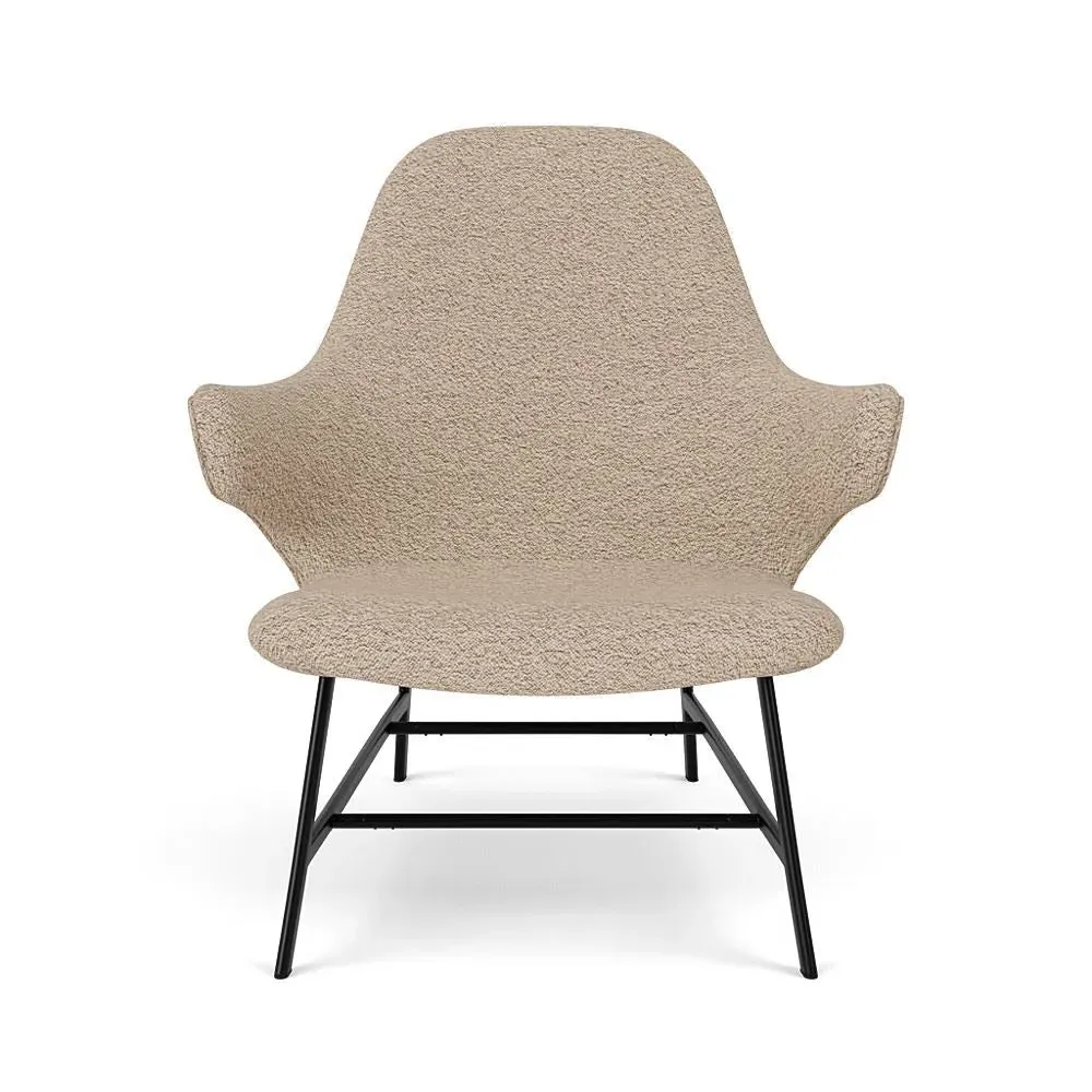The Catch lounge chair combines comfort and distinctive design with its embracing silhouette, developed by designer Jaime Hayon. Its sculptural form provides relaxed seating, while the Re-Wool 128 fabric offers both softness and resilience. The chair features a tube base construction in black powder-coated steel, delivering both structural support and sleek aesthetics. Multiple upholstery options are available to complement various interior schemes.