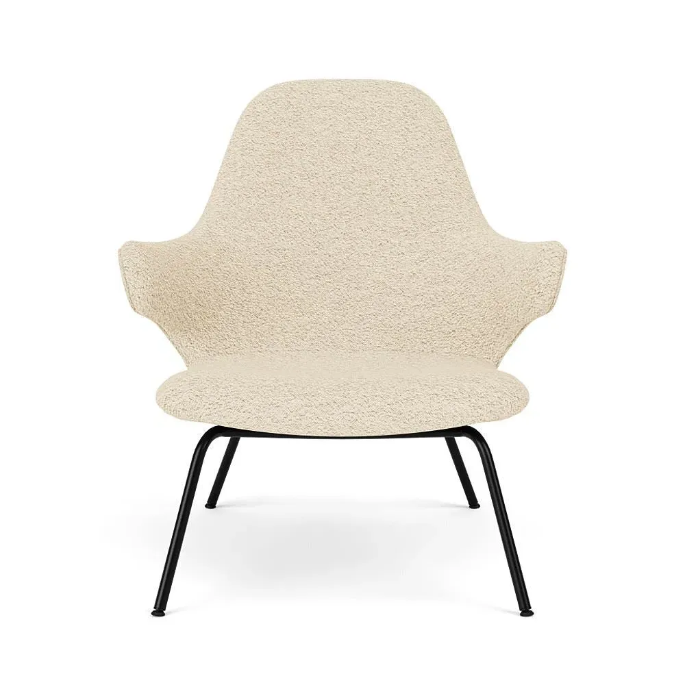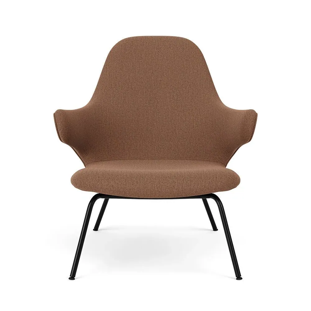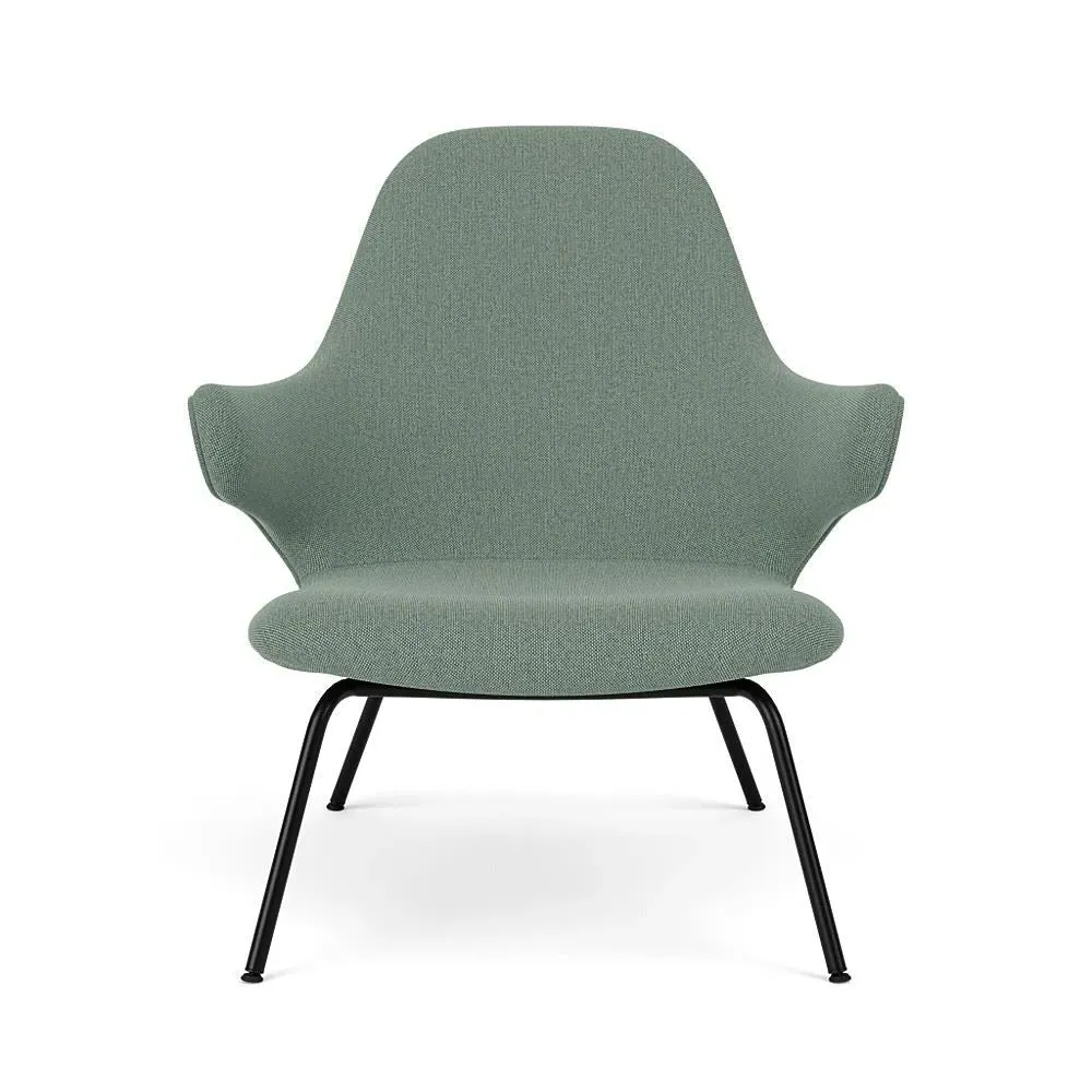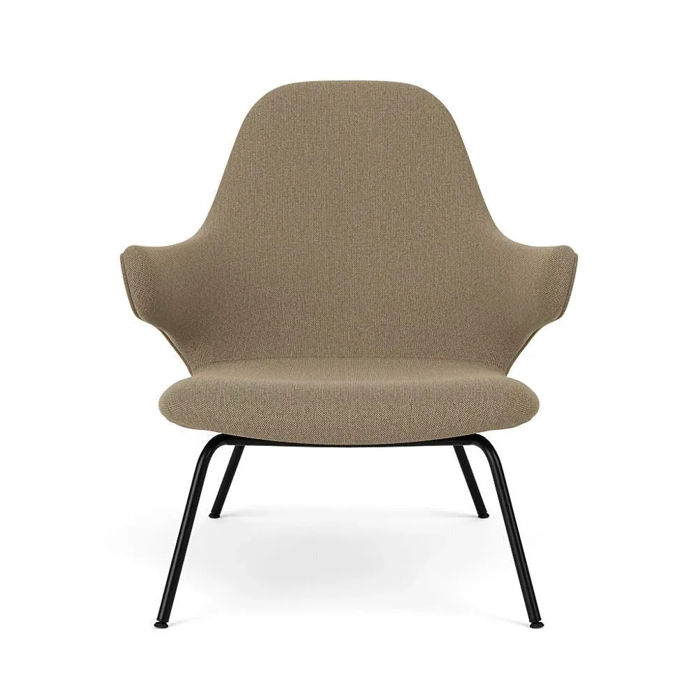 The lounge chair offers exceptional comfort with its enveloping design that cradles the body naturally. Its Re-Wool upholstery provides sustainable luxury, while the powder-coated steel tube base adds contemporary appeal. The chair features a choice of round or flat tube construction, and the robust frame ensures lasting durability.