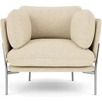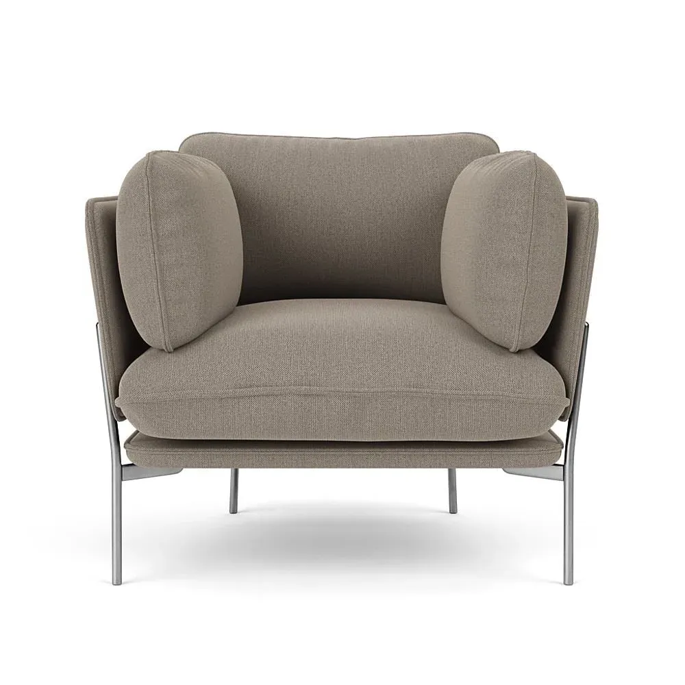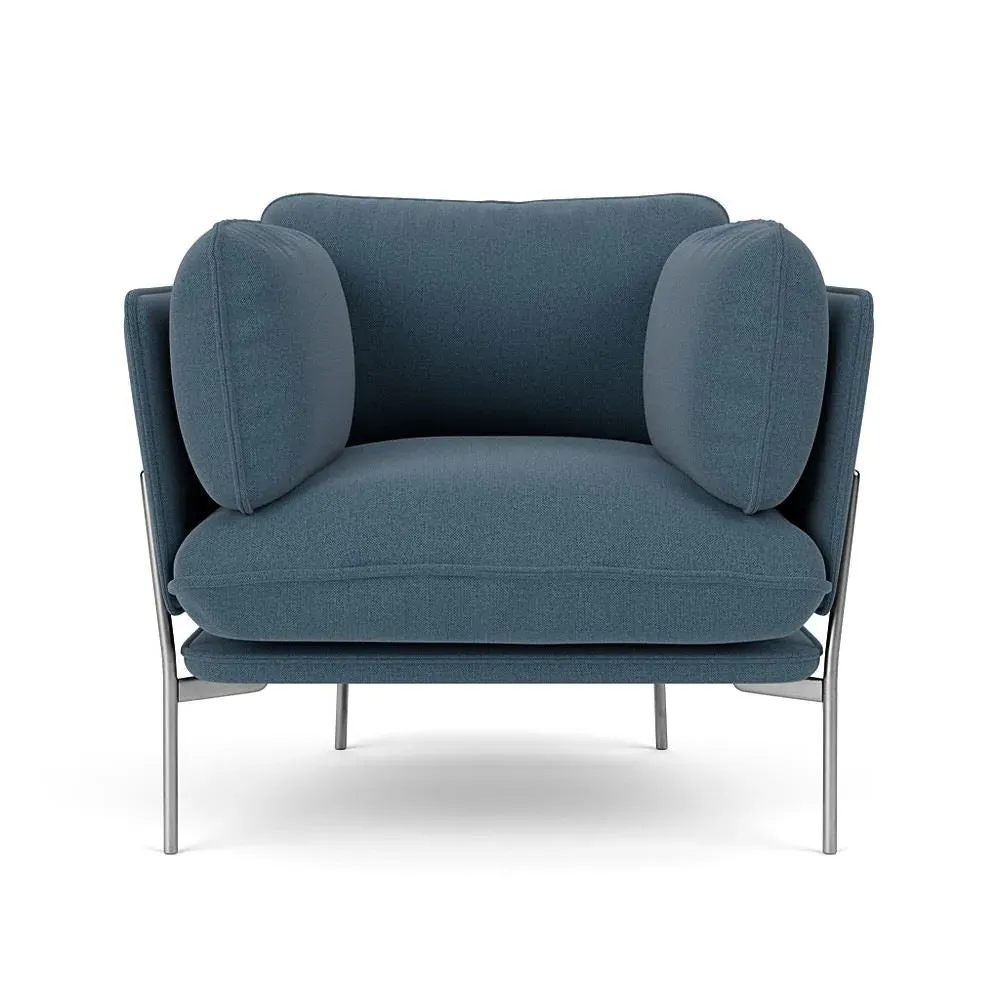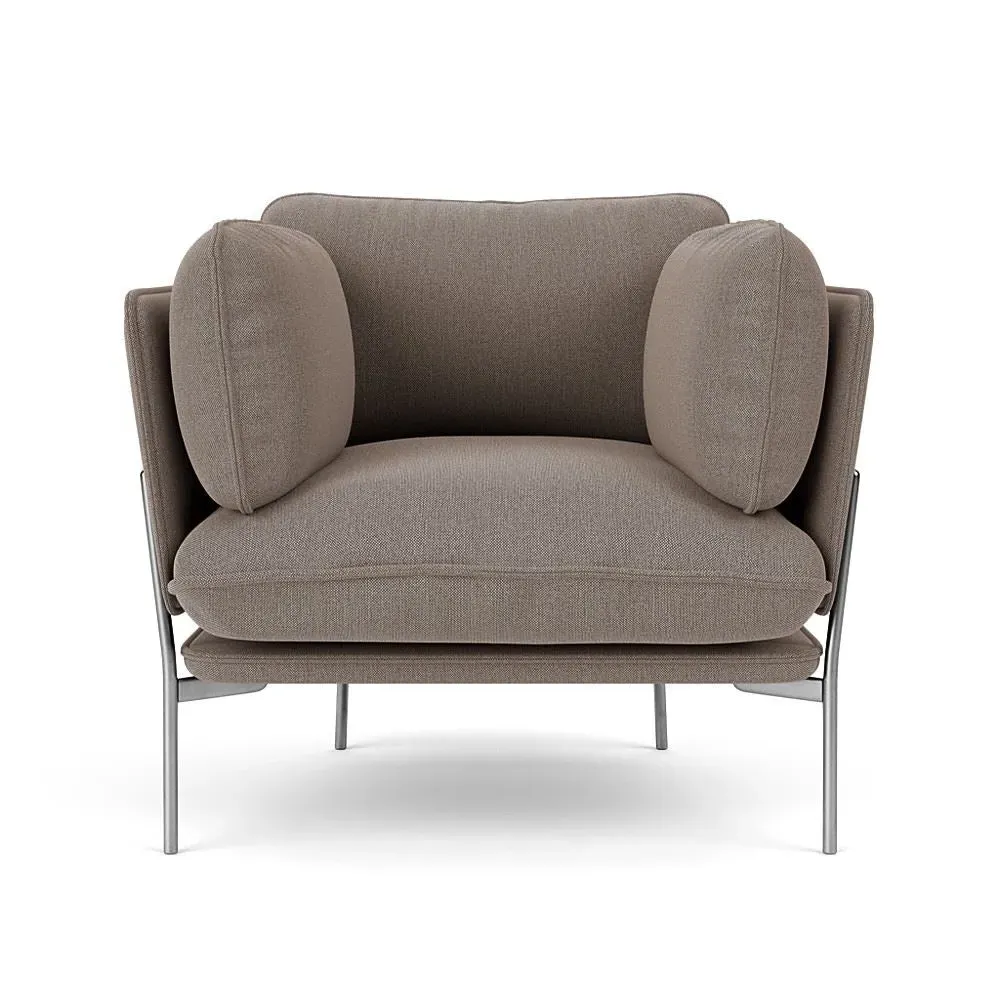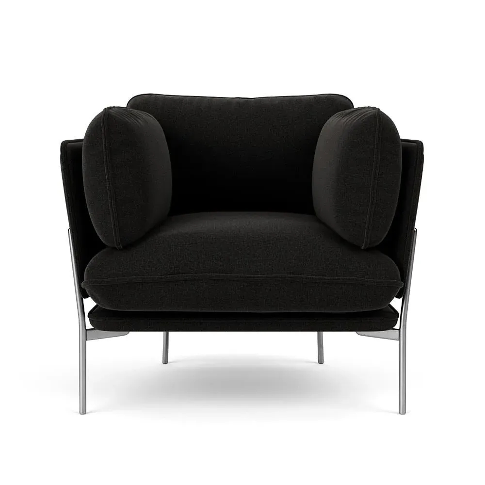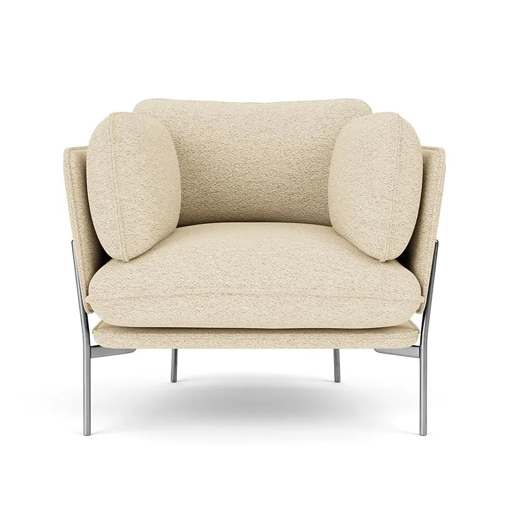 The LN1 Cloud Lounge Chair combines Danish form with Italian comfort through its plush pillow construction. Its high resilience foam and feather filling contours to body curves, while the Re-Wool 108 upholstery adds tactile appeal. The chrome frame provides durable support, and the soft pillows deliver exceptional comfort for extended lounging.