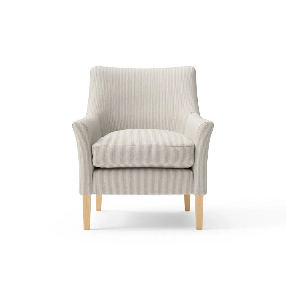 With a supportive back, gently curved arms and tapered legs, Nancy is one of our smallest armchairs. A versatile, classic design for those more compact corners.