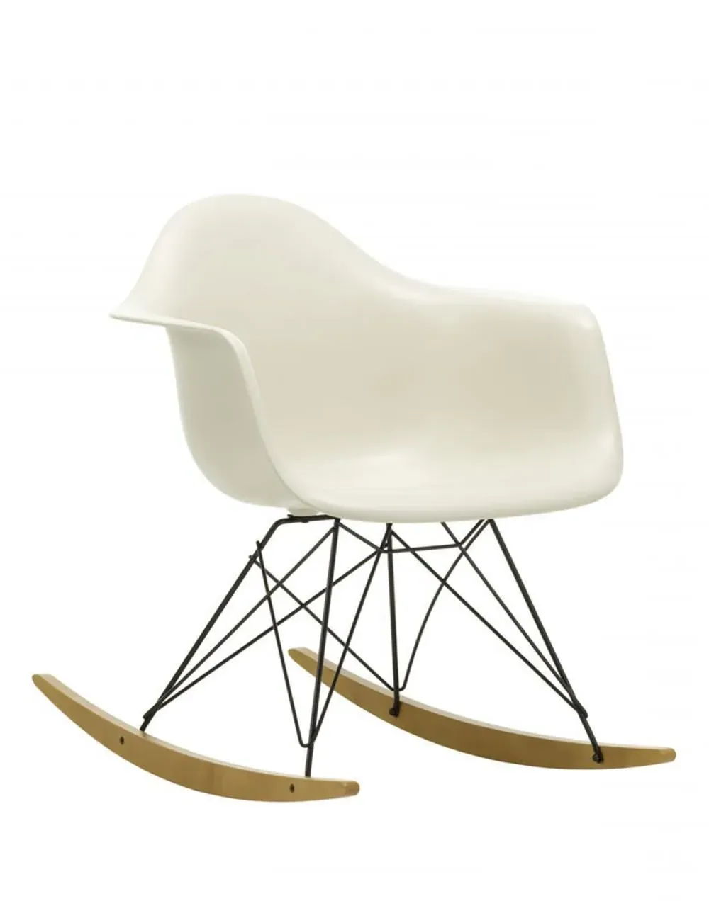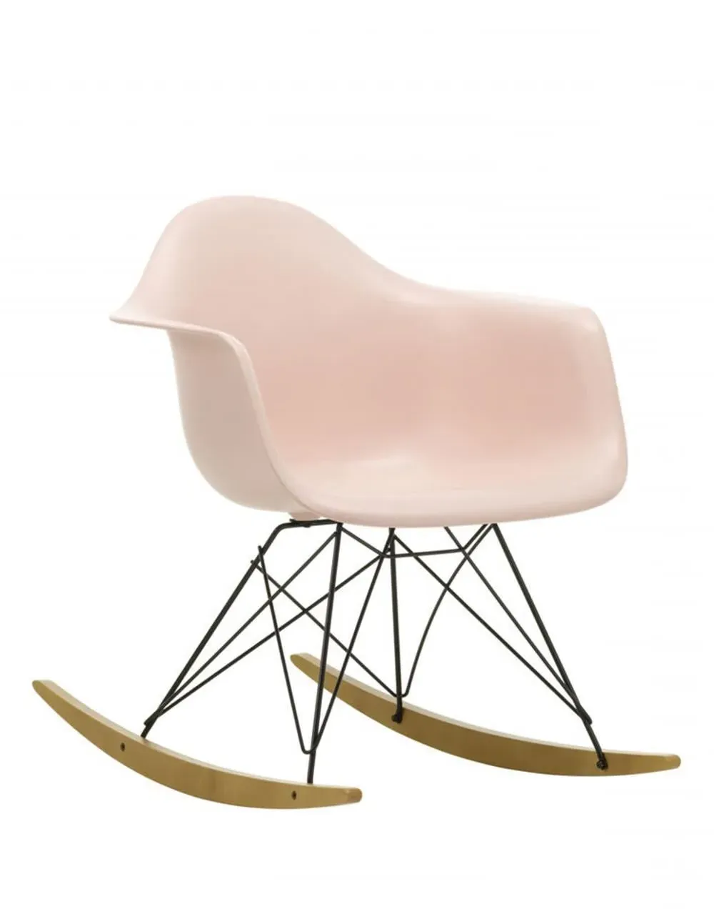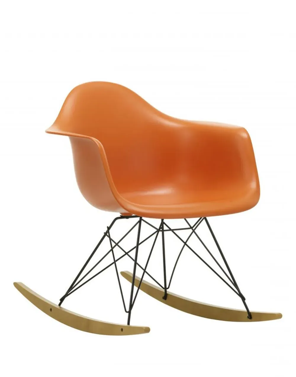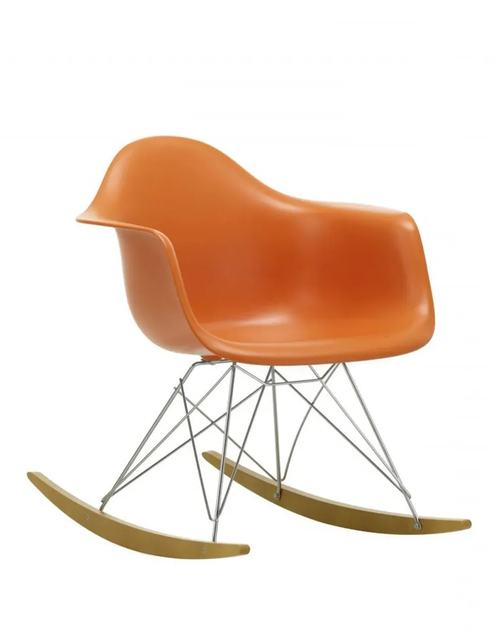 Part of Charles and Ray Eames iconic 1950s seating collection, the timeless design of the RAR plastic rocking chair has always stood out. Despite its compact dimensions, it offers excellent comfort thanks to its supportive polypropylene shell, while the unusual wooden runners allow the user a calming rocking motion. The RAR plastic rocking chair provides a stylish alternative to the classic lounge chair, making it a striking accent piece for any living room. Available in a wide variety of base and seat shell colours, customise the Eames RAR plastic armchair to blend in or stand out in your home. To purchase the RAR fibreglass armchair with a seat cushion or full upholstery, please email our team at sales@hollowaysofludlow.com