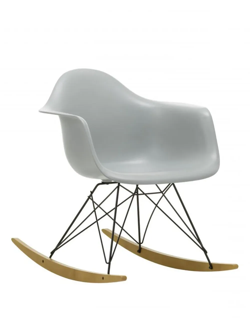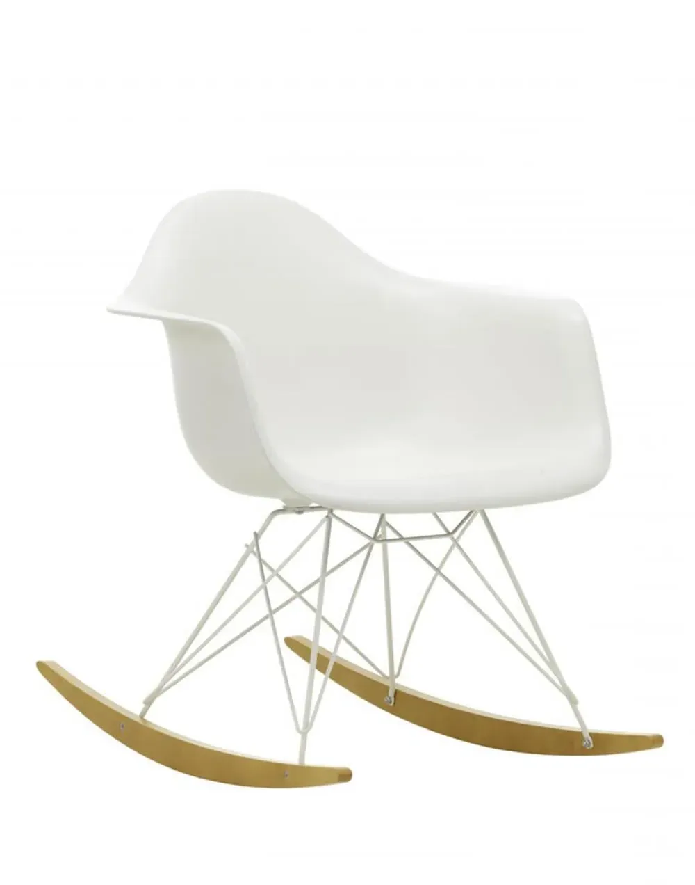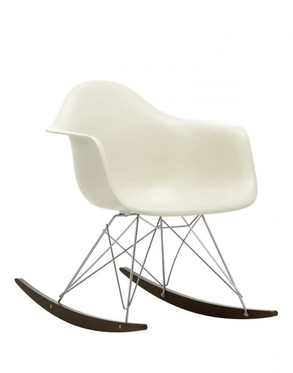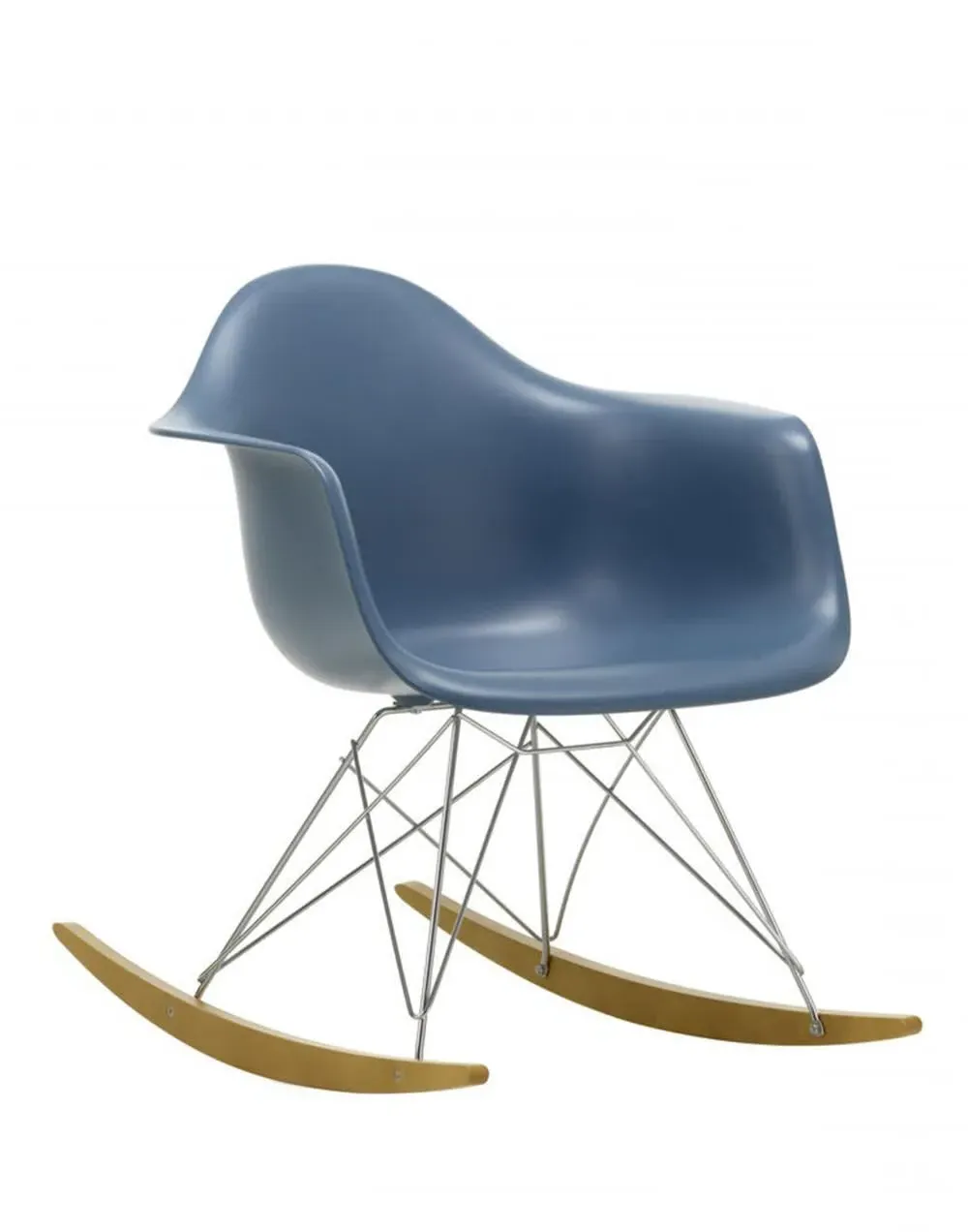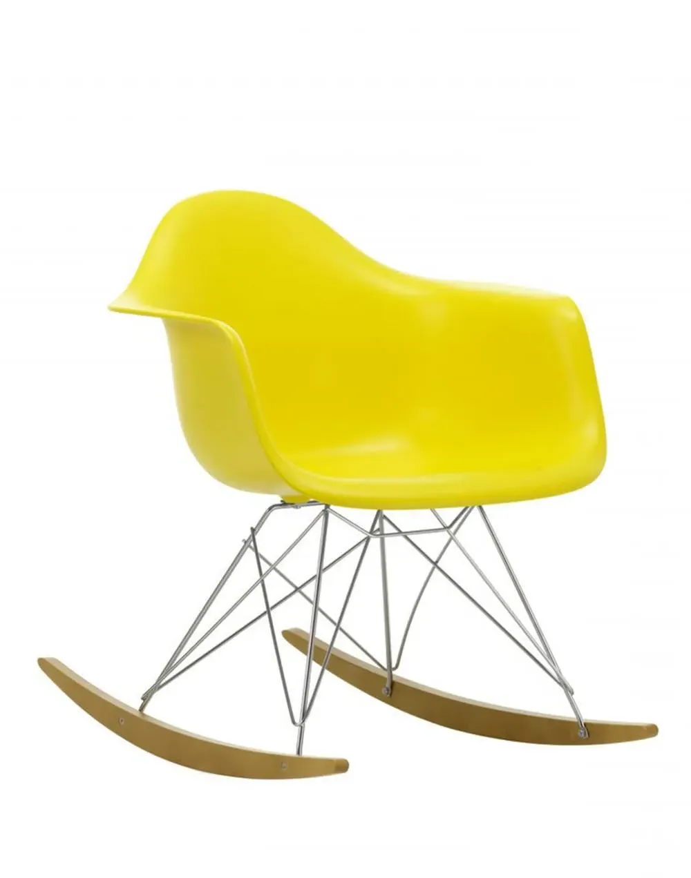 Part of Charles and Ray Eames iconic 1950s seating collection, the timeless design of the RAR plastic rocking chair has always stood out. Despite its compact dimensions, it offers excellent comfort thanks to its supportive polypropylene shell, while the unusual wooden runners allow the user a calming rocking motion. The RAR plastic rocking chair provides a stylish alternative to the classic lounge chair, making it a striking accent piece for any living room. Available in a wide variety of base and seat shell colours, customise the Eames RAR plastic armchair to blend in or stand out in your home. To purchase the RAR fibreglass armchair with a seat cushion or full upholstery, please email our team at sales@hollowaysofludlow.com