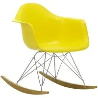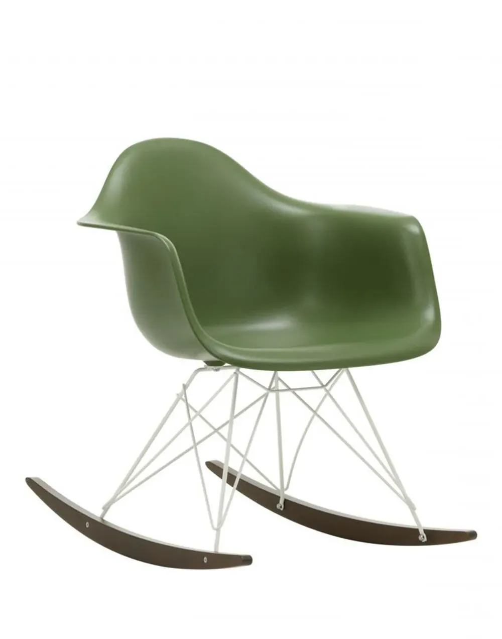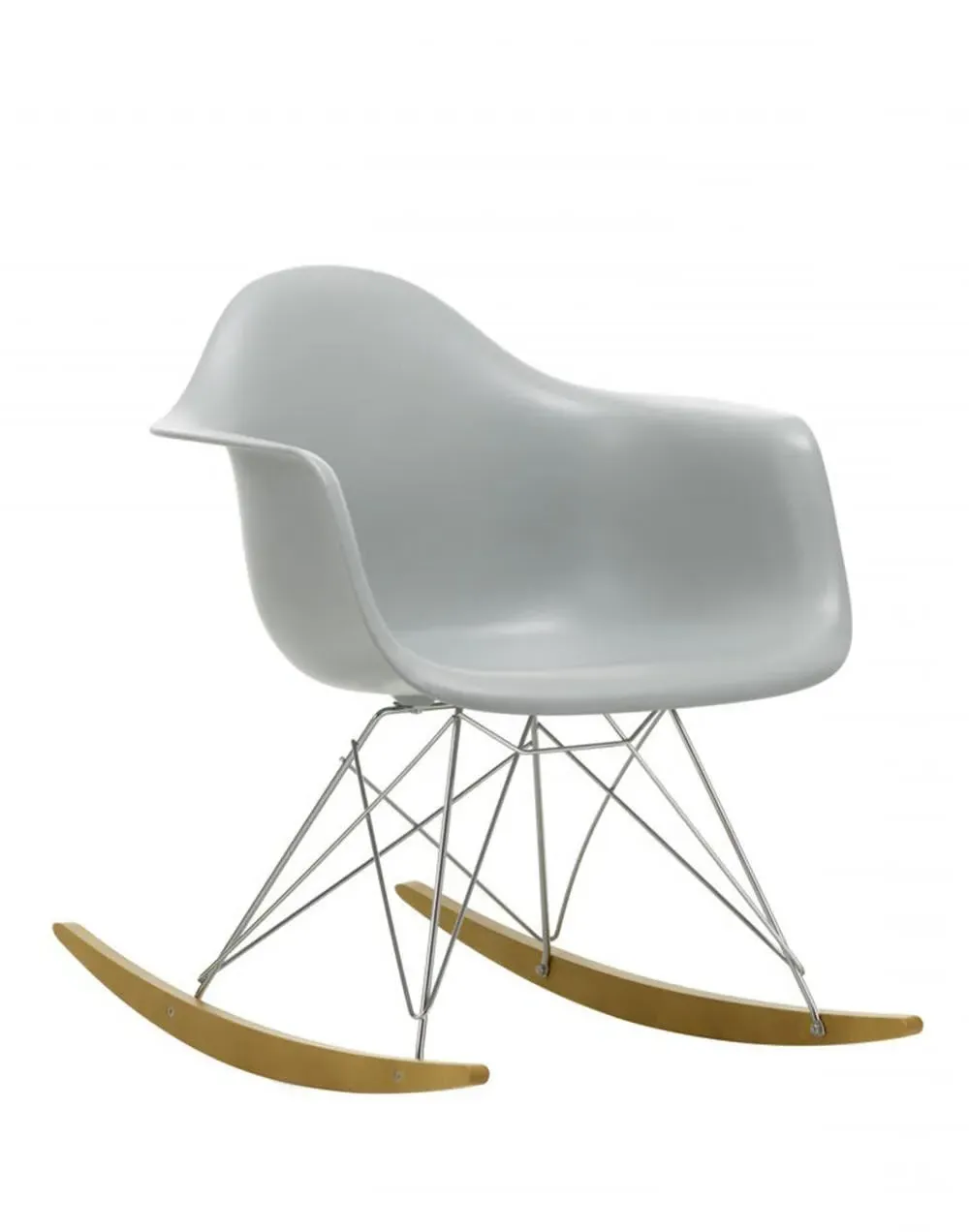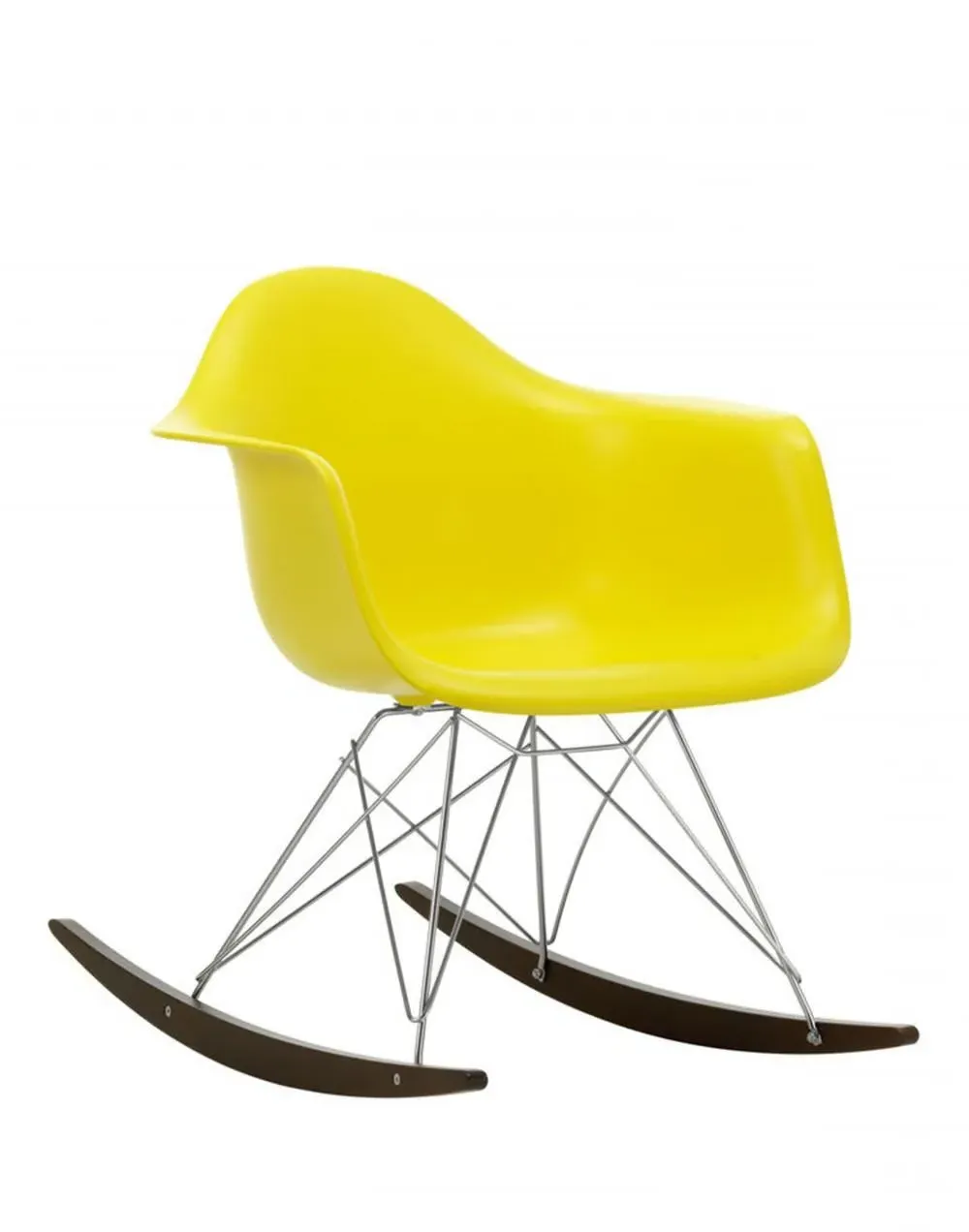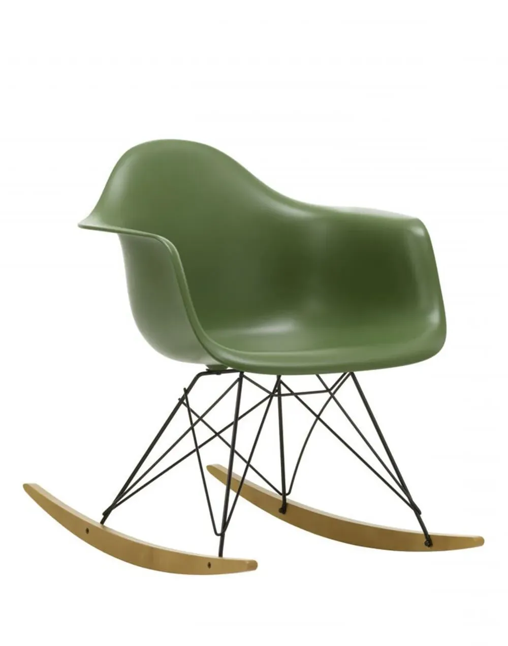 Part of Charles and Ray Eames iconic 1950s seating collection, the timeless design of the RAR plastic rocking chair has always stood out. Despite its compact dimensions, it offers excellent comfort thanks to its supportive polypropylene shell, while the unusual wooden runners allow the user a calming rocking motion. The RAR plastic rocking chair provides a stylish alternative to the classic lounge chair, making it a striking accent piece for any living room. Available in a wide variety of base and seat shell colours, customise the Eames RAR plastic armchair to blend in or stand out in your home. To purchase the RAR fibreglass armchair with a seat cushion or full upholstery, please email our team at sales@hollowaysofludlow.com