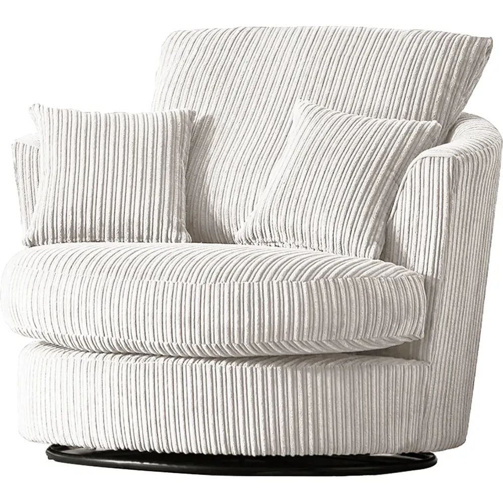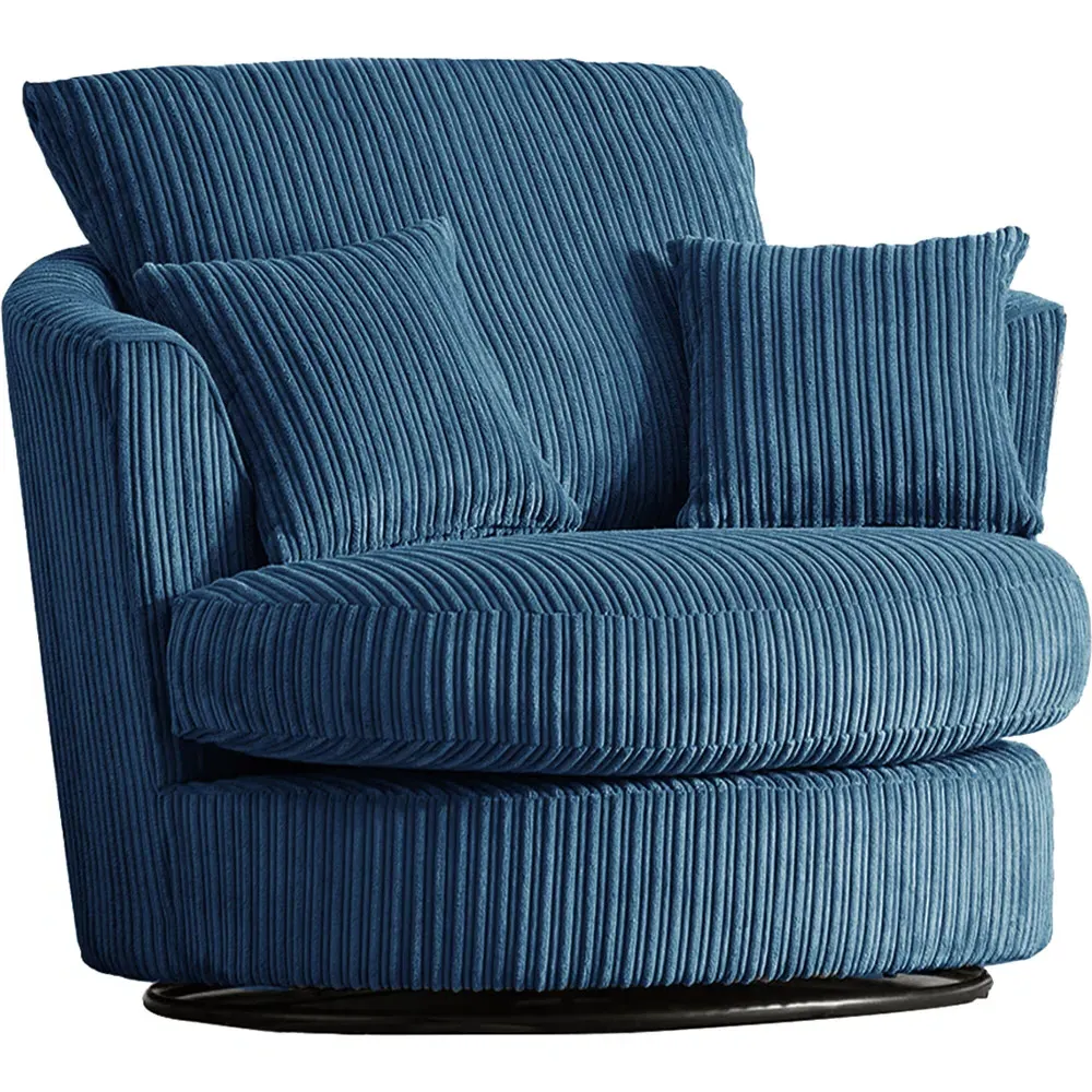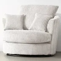 The Modern Cord Swivel Chair is a highly comfortable piece of furniture that comes with foam and fibre cushions that are deep-filled. The chair is ideal for those looking for something stylish and comfortable. The chair is made from soft jumbo cord fabric, providing comfort and practicality to your home. Rotates 360 degrees.