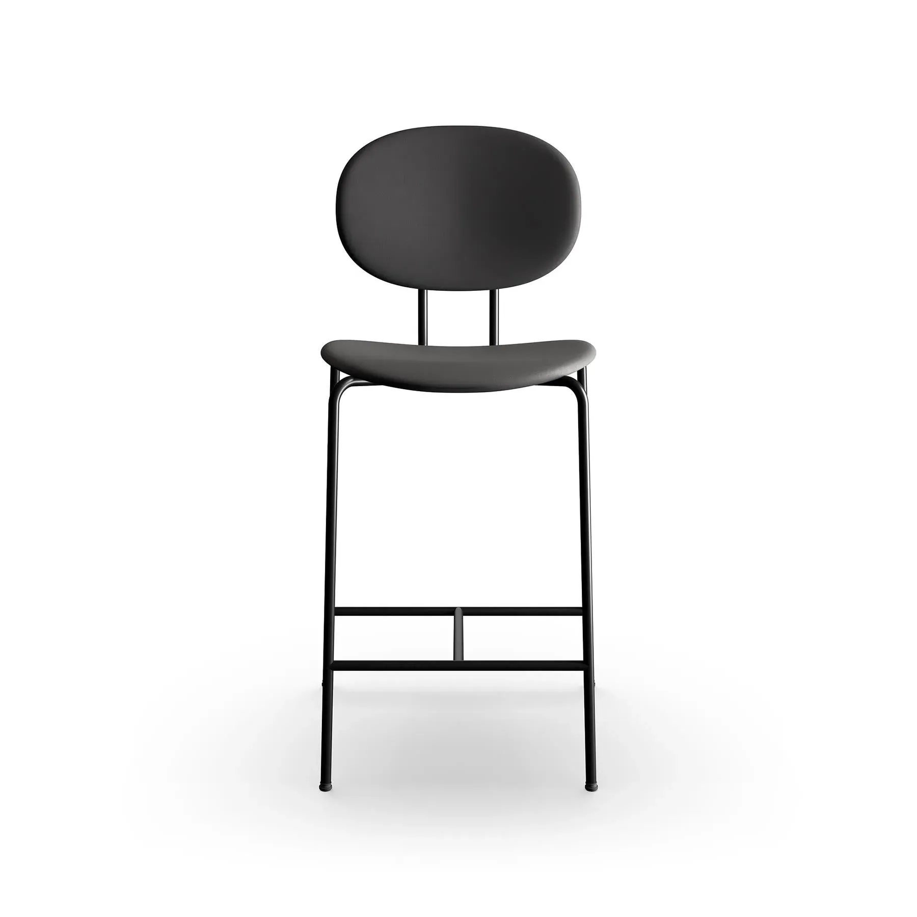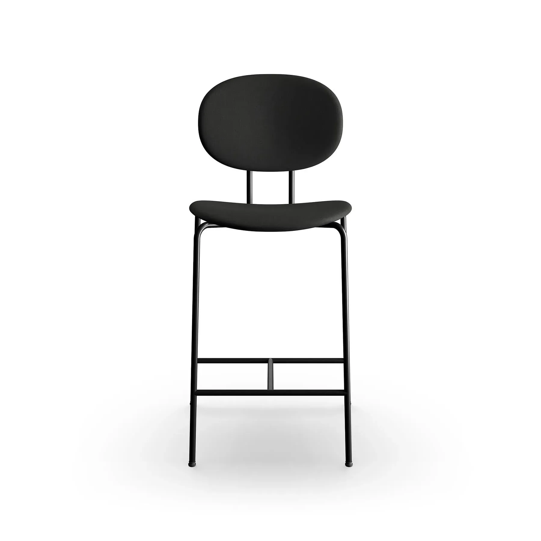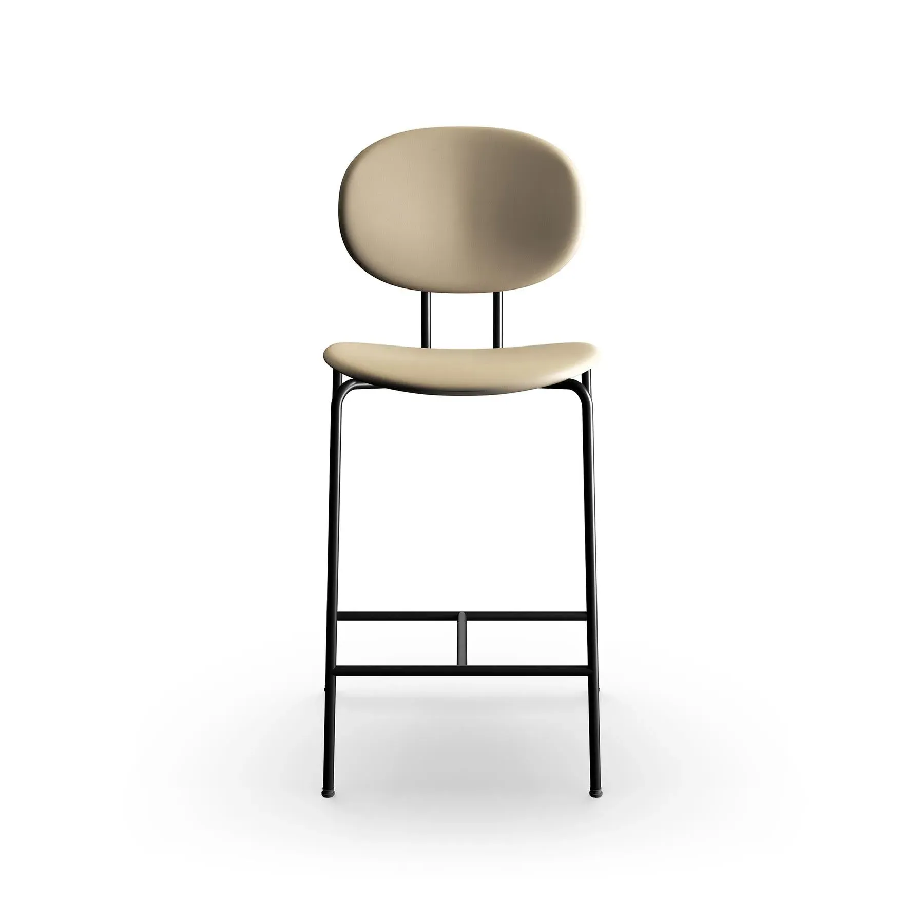 The bar stool combines Danish design heritage with its distinctive super-ellipse shape, featuring Remix 612 fabric upholstery. Its black steel frame provides sturdy support, while the upholstered seat offers comfort during extended use. The 65cm height suits standard bar counters, and the steel base ensures stability and durability.