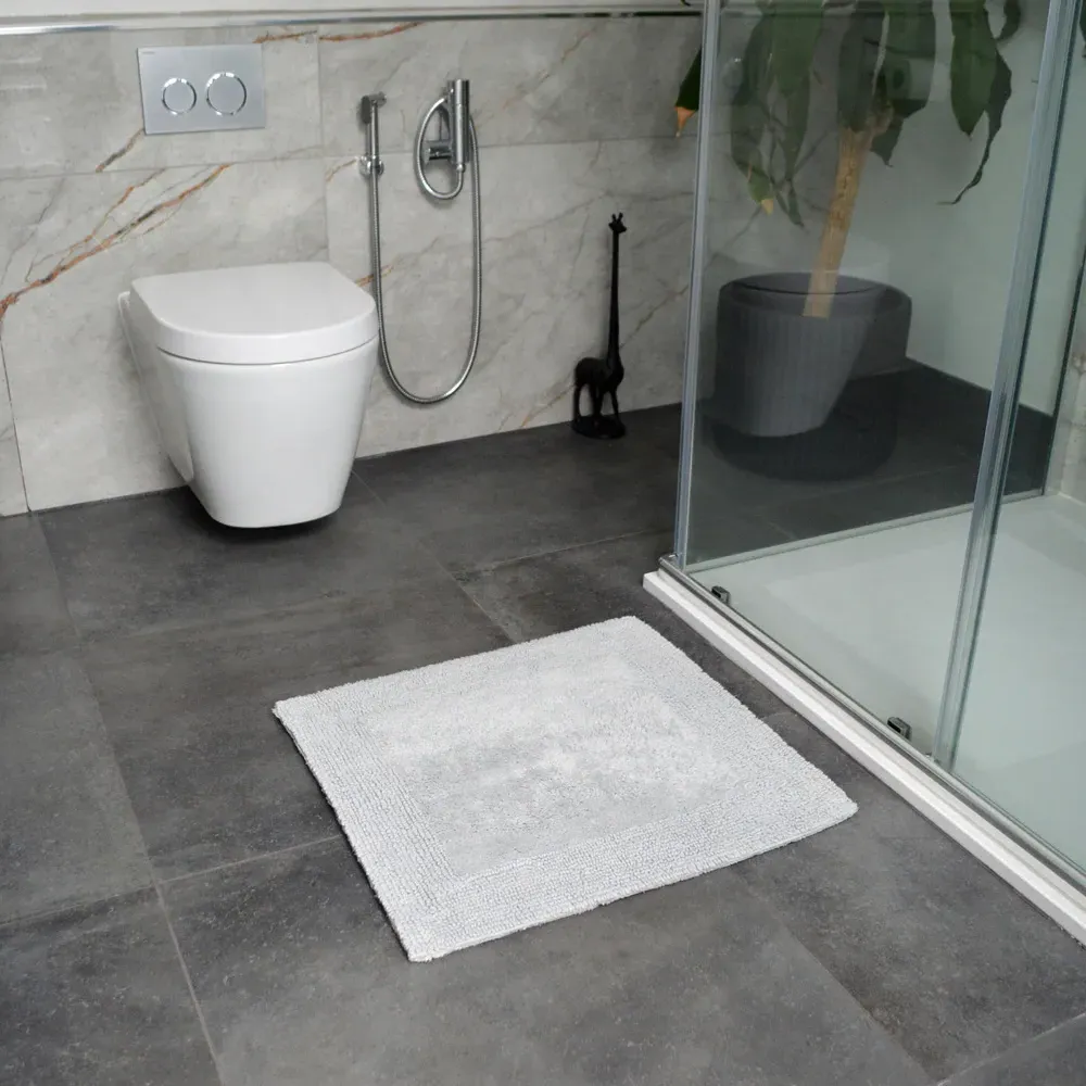 The Elegance Square Bath Mat provides comfort and warmth underfoot with its heavyweight, super absorbent construction. Its reversible design offers versatility, while the square shape creates a trendy alternative to traditional rectangular mats. The absorbent material keeps bathroom floors safe and dry from splashes. W55 x D55 cm.