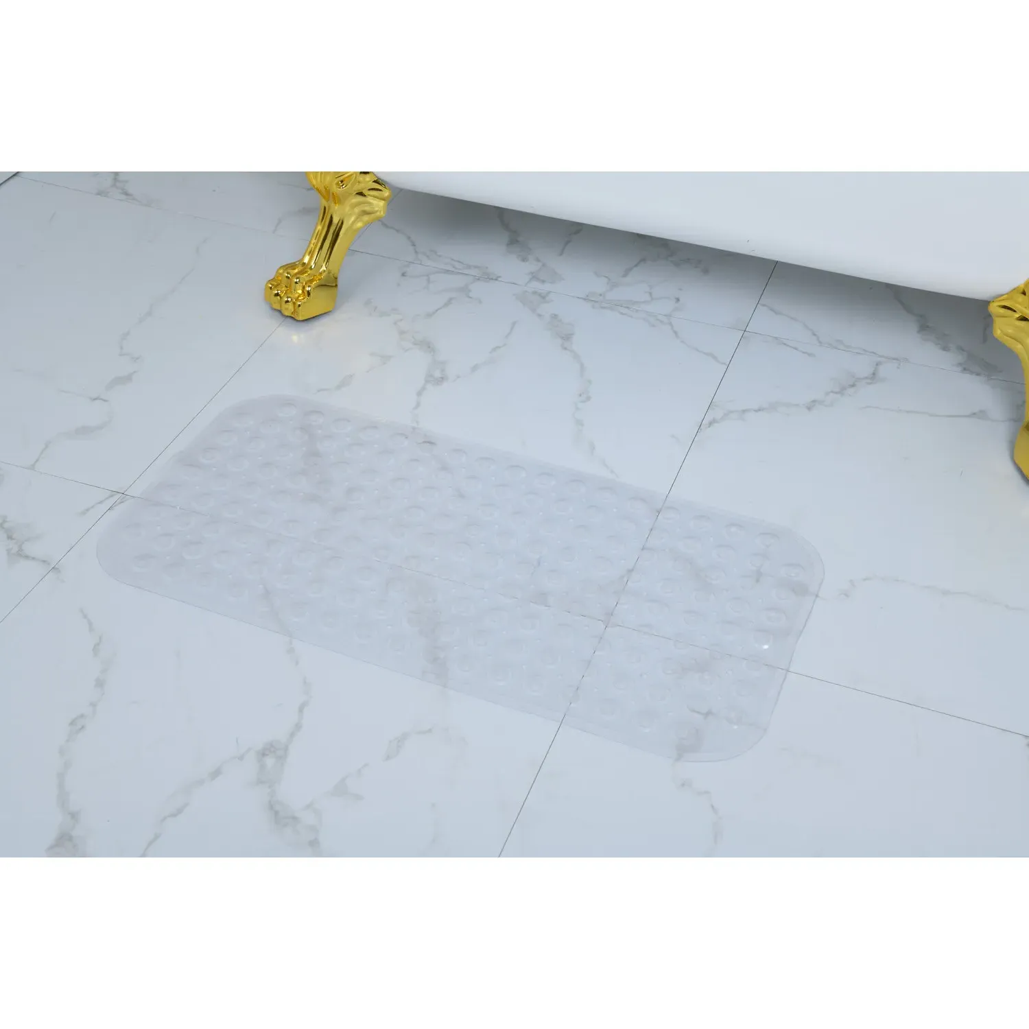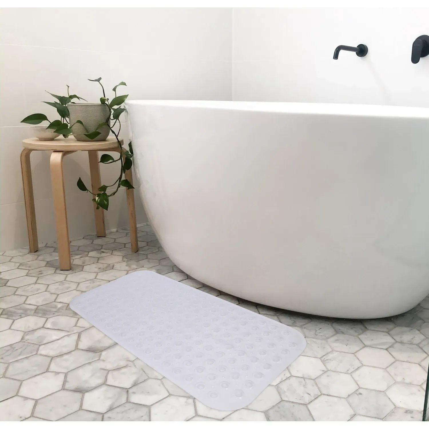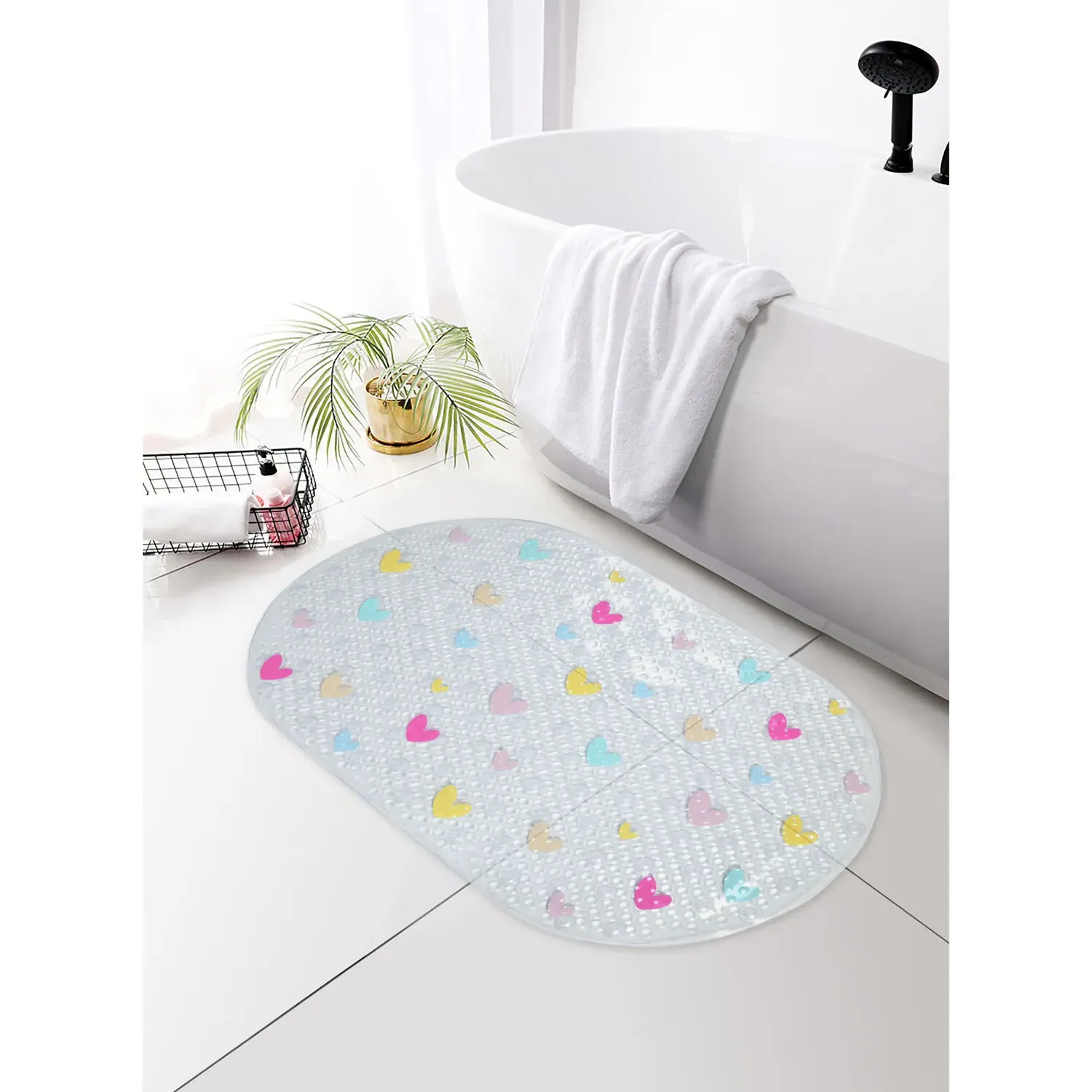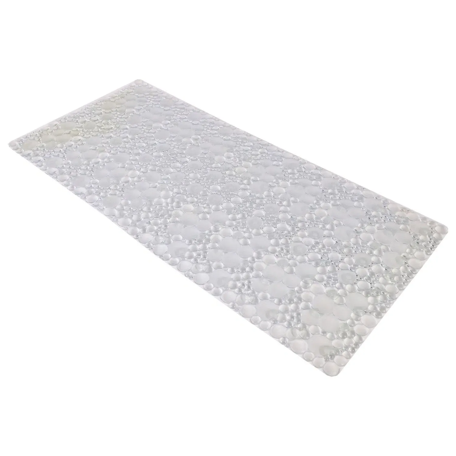 The Rainbows PVC Bath Mat prevents slips and falls with its anti-slip surface featuring white rainbow designs. Its durable PVC construction provides reliable safety in wet conditions, while the cheerful rainbow pattern adds visual interest to bathroom decor. The textured surface ensures secure footing in any shower or bath.
