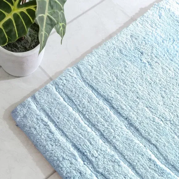 The bath runner offers plush comfort with its thick cotton pile, featuring textured stripe detailing that adds visual interest. Its dense 100% cotton construction provides excellent water absorption while delivering a soft, supportive step underfoot. The machine washable design maintains freshness with easy care, and the durable pile construction ensures long-lasting performance.