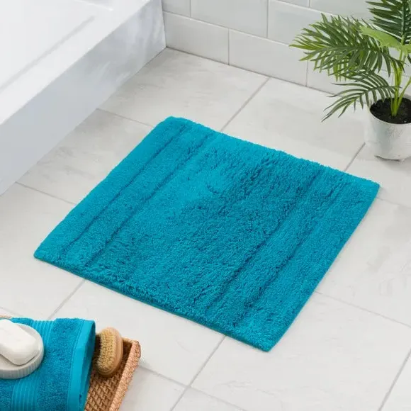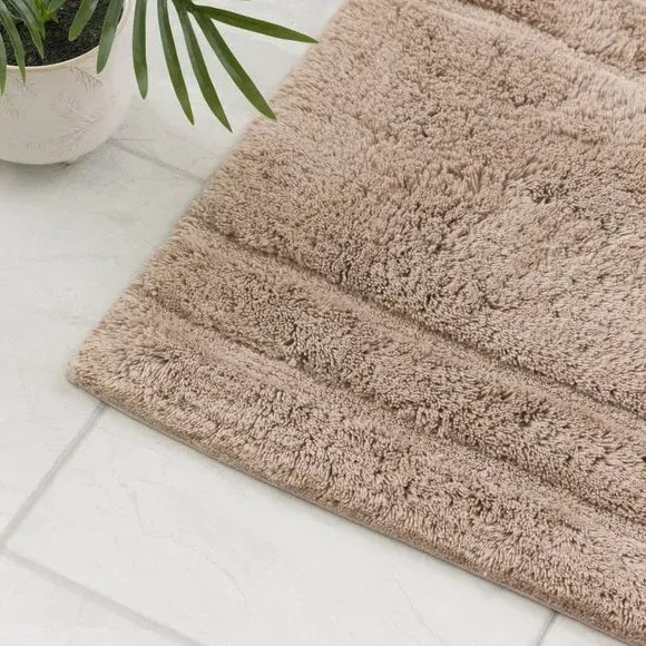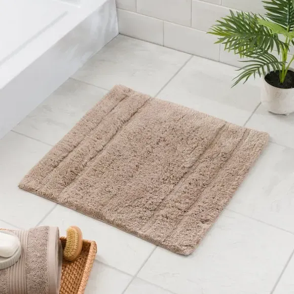 The shower mat offers plush comfort with its dense cotton pile, featuring textured stripe detailing for a refined finish. Its thick construction provides cushioned support underfoot, while the 100% cotton material absorbs splashes effectively. The machine washable design maintains freshness with regular use, and the soft pile adds comfort to daily routines.