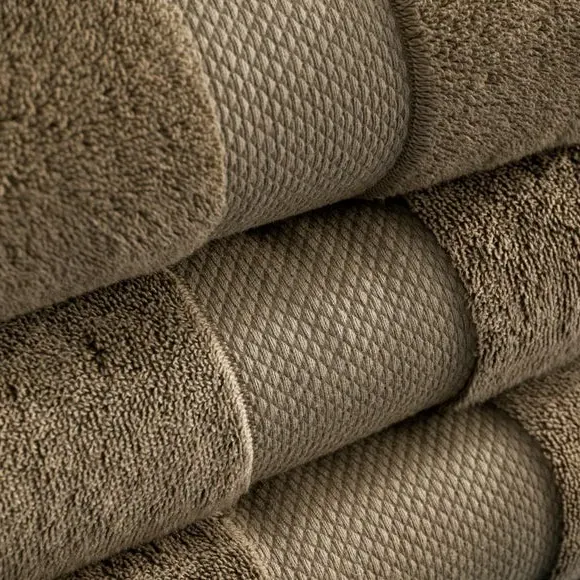 The towel combines 70% cotton with 30% viscose for a silky-smooth feel and superior absorbency. Its 700 GSM weight provides heavyweight luxury while maintaining quick-drying properties, with a popcorn-weave border adding texture to the plush terry pile. The blend ensures durability through over 50 washes while retaining shape and color. OEKO-TEX certified construction guarantees environmental and safety standards throughout production.