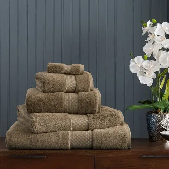 * 700 GSM - premium heavyweight towel for a luxury hotel experience at home* 70% cotton, 30% viscose - viscose in the pile provides a superior silky-smooth feel* Supreme quality and durability - tested to over 50 washes to retain shape and colour, wash after wash* 5 year guarantee* Available in a choice of sophisticated colorways across multiple size options Start your day with a Hotel Towel for a 5-star experience. Crafted from a luxurious blend of cotton and viscose, this towel offers unparalleled comfort with its indulgently soft and generously piled texture. Its elegant popcorn-weave border adds the perfect finishing touch to the plush, looped terry pile, ensuring a delightfully soft sensation against your skin. With a weight of 700 GSM, it balances exceptional absorbency with a long-lasting sumptuous quality and softness, wash after wash. These soft, elegant towels are available in a range of sophisticated colour palettes and multiple size options, so you can mix and match with your needs and decor. Want the full look? Check out our colour coordinating bath mats. When choosing the perfect towel, GSM (grams per square meter) is key – providing an indication of how thick, heavy and luxurious your towel will feel. Opt for low to midweight option (less than 600 GSM) for a quick-drying solution or choose a heavier weight (600 GSM+) for ultimate luxury. This product is OEKO-TEX MADE IN GREEN certified, meaning it was produced in OEKO-TEX S Te P certified factories - verifying environmental, social, and chemical standards in the facility. It has also been certified to OEKO-TEX STANDARD 100, the original safety standard for everyday confidence. To offer full visibility, the production stages throughout the supply chain can be traced.