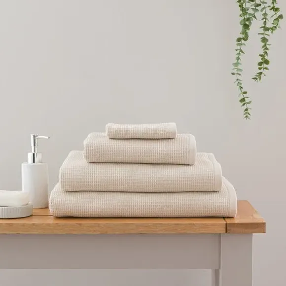 **The Edited Life** - Organic Cotton Reversible Waffle Towel* 650 GSM - a heavier weight towel for comfort* 100% Organic cotton* Textured waffle weave* Reversible design* Highly absorbent* Available in multiple colourways across different size options This collection of 100% organic cotton towels has a textured waffle finish and are reversible for a different look. The 650 GSM weight gives these towels an exceptionally soft feel. Whether you're showering after a long day or taking your time in a luxurious spa-like bath, these towels are the perfect companion to cocoon yourself in. Highly absorbent and available in a choice of colours and sizes, this is the ideal collection for a relaxed and stylish bathroom aesthetic. When choosing the perfect towel, GSM (grams per square metre) is key – providing an indication of how thick, heavy and luxurious your towel will feel. Opt for low to midweight option (less than 600 GSM) for a quick-drying solution or choose a heavier weight (600 GSM+) for ultimate luxury. This product is OEKO-TEX MADE IN GREEN certified, meaning it was produced in OEKO-TEX S Te P certified factories - verifying environmental, social, and chemical standards in the facility. It has also been certified to OEKO-TEX STANDARD 100, the original safety standard for everyday confidence. To offer full visibility, the production stages throughout the supply chain can be traced.**Live well. Mean well. Be well.**Many of us want to live simpler, more responsible lives. As we become more aware of our surroundings and understand how our choices contribute to the world around us, more people are choosing to consume less and curate more. The Edited Life introduces a new era of thoughtfulness in the home, with an understated collection of pieces chosen for their simple beauty, quality craftsmanship and innate usefulness that will last beyond any trend. Having it all is no longer the goal; having enough, and it being just right, is.