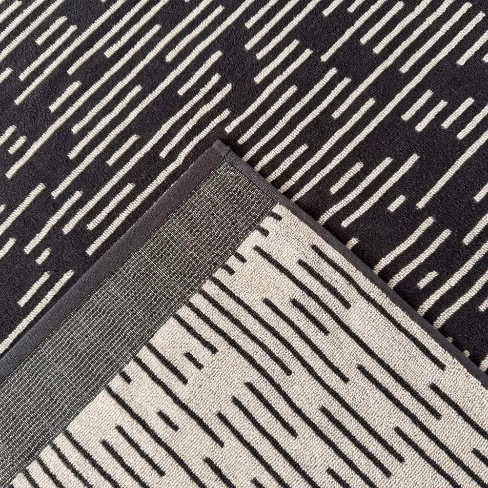 The bath sheet offers luxurious softness with its zero twist cotton construction, featuring distinctive barcode stripe design. Its pop up weaving creates long, bouncy loops that provide extra plush comfort and gentle care for sensitive skin. The absorbent and quick-drying fabric ensures efficient moisture wicking, while the sewn-in hanging loop adds convenient storage and faster drying.