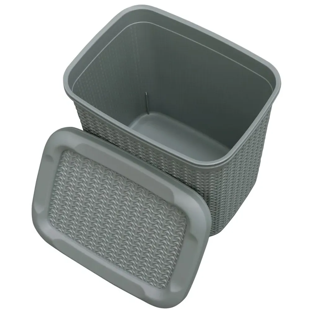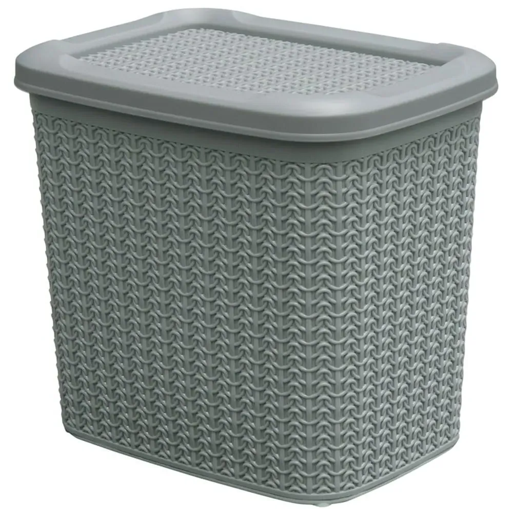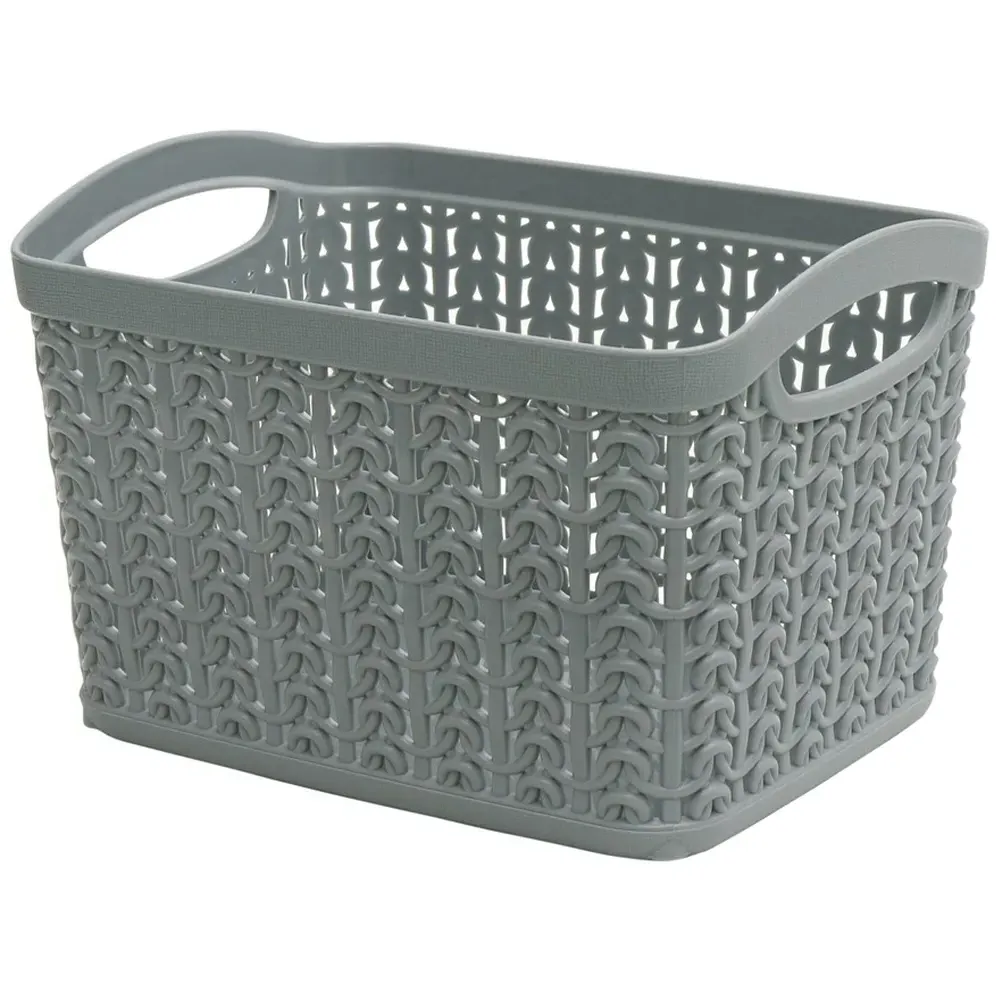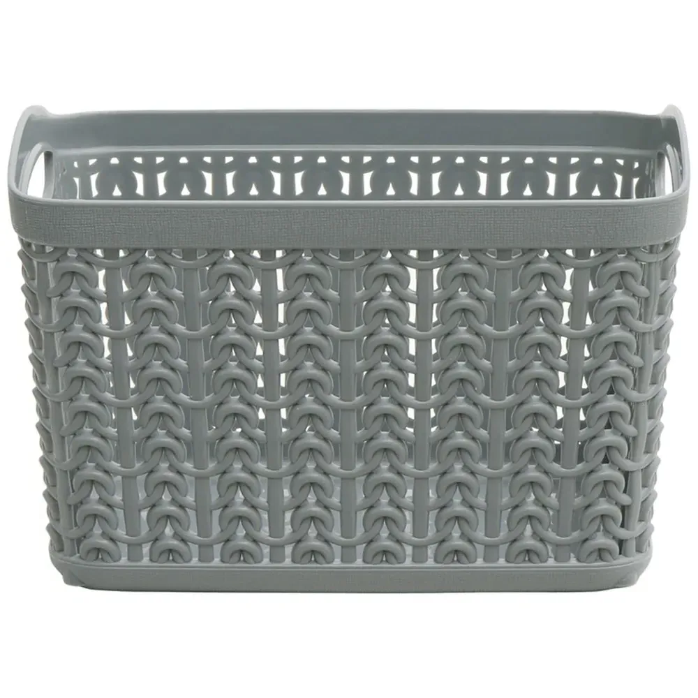 The Loop Storage Basket offers organised storage with its knitted loop design in grey. Its durable plastic construction provides resistance to wear and tear, while the ventilated design allows air circulation to prevent odours. The comfortable handles ensure easy carrying and moving, and the multi-functional design accommodates various items from toiletries to stationery. W28 x D20 x H12 cm.