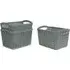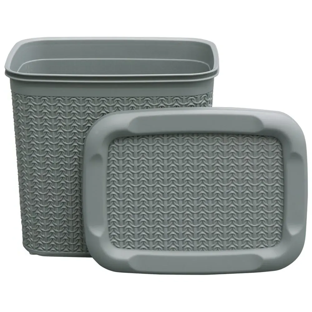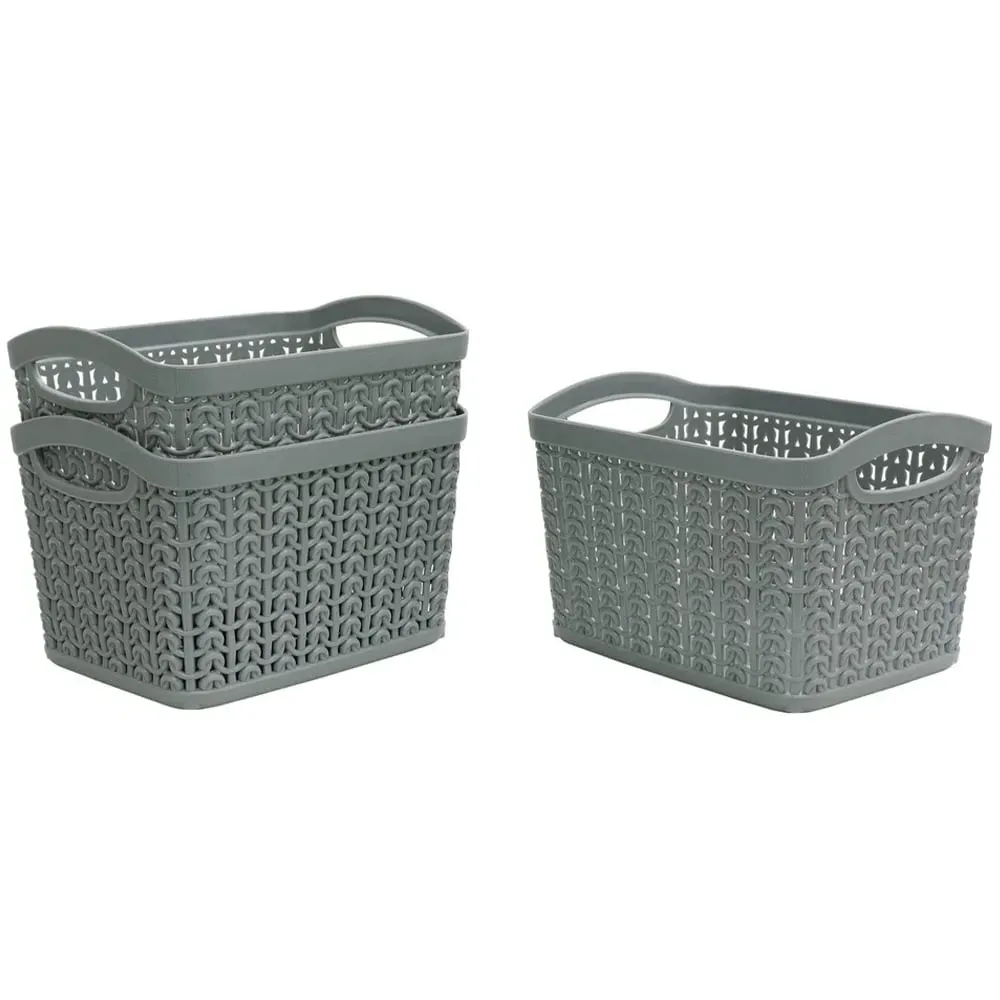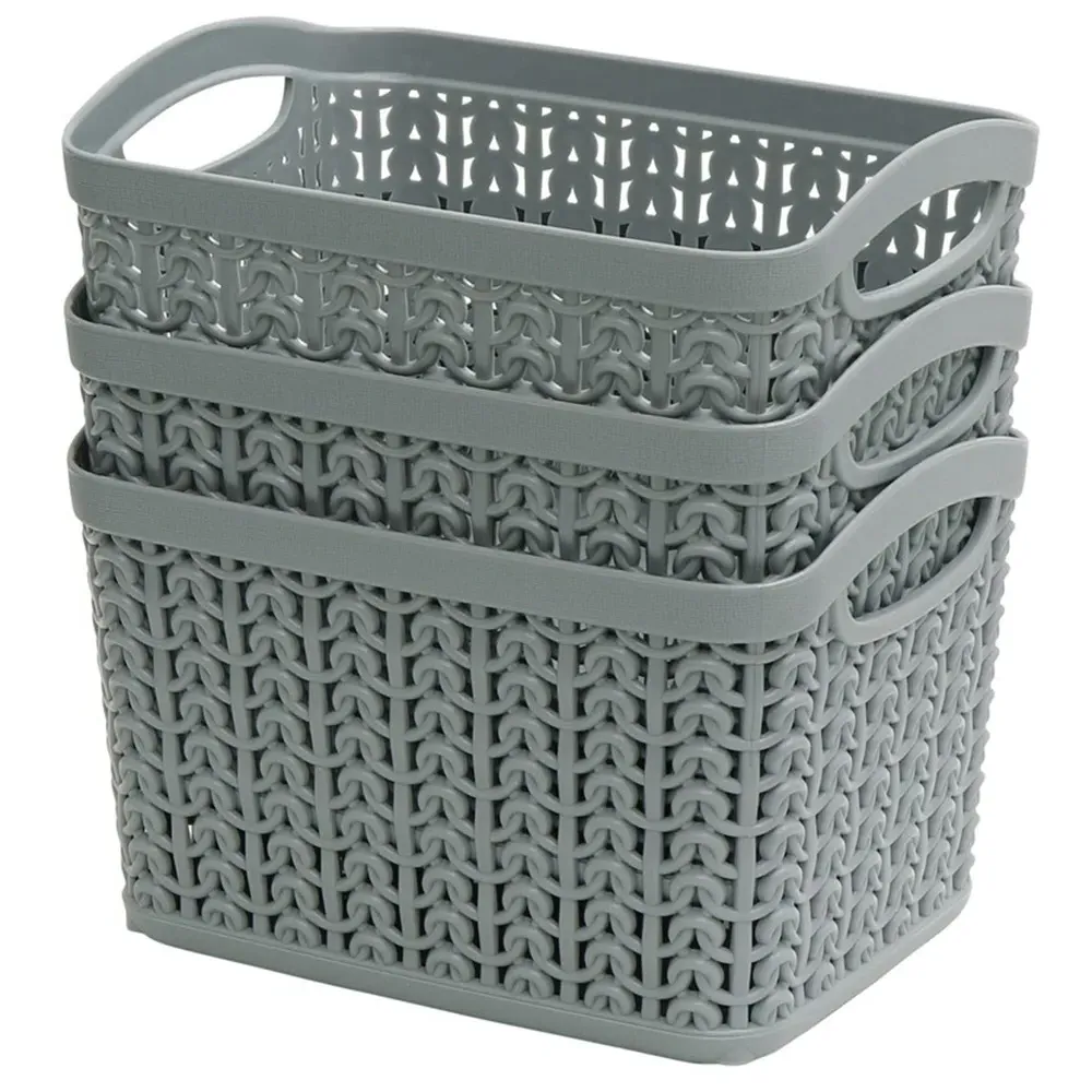 The Loop Storage Basket offers organised storage with its knitted loop design in grey. Its durable plastic construction provides resistance to wear and tear, while the ventilated design allows air circulation to prevent odours. The comfortable handles ensure easy carrying and moving, and the multi-functional design accommodates various items from toiletries to stationery. W28 x D20 x H12 cm.