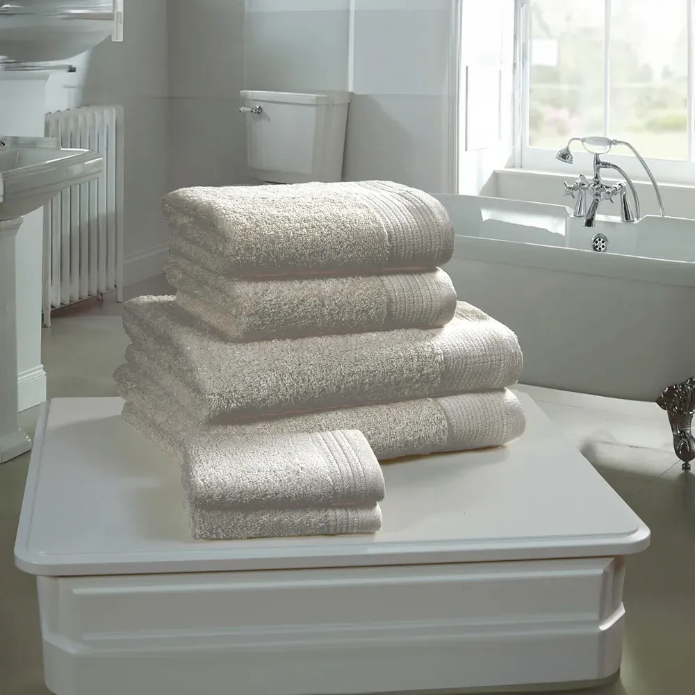 The Chatsworth Bath Towel offers exceptional softness with its 100% combed 600gsm cotton construction. The thick, lofty pile provides superior absorbency while ensuring long-lasting durability. Its combed cotton fibers create an ultra-soft texture that maintains quality through years of use.