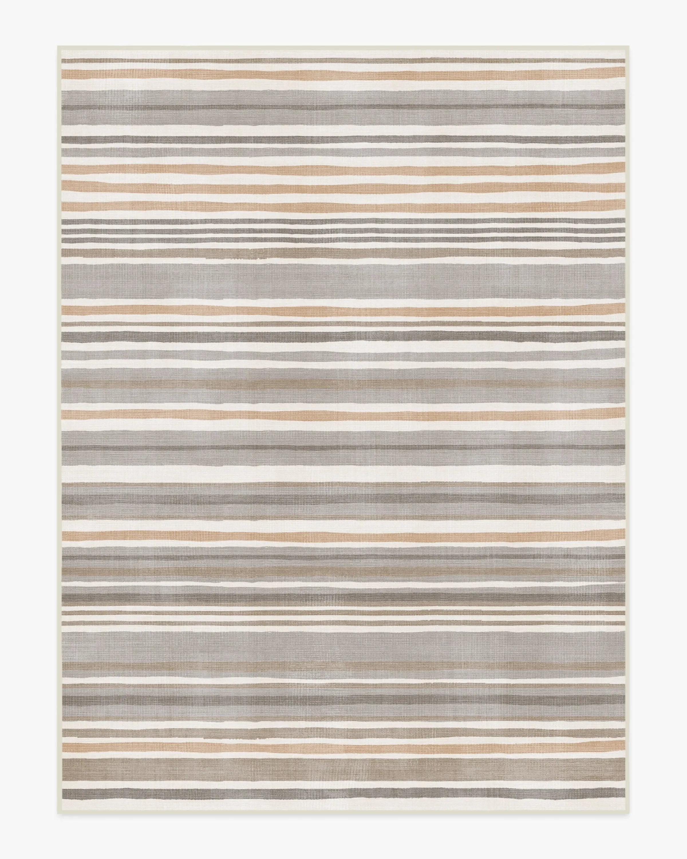 Our Elio Stripe Grey & Ivory Rug features a pattern of horizontal, neutral stripes with organic linework. Warm taupes, greys, and beige tones blend together to form a warm palette. Water-resistant, stain-resistant, and machine-washable. Rug colours may vary slightly according to your device and the lighting in your space. 60x90 | Machine Washable Area Rug | Kid & Pet Friendly | Indoor Rugs | Elio Stripe Grey & Ivory Flatwoven Rug | Ruggable