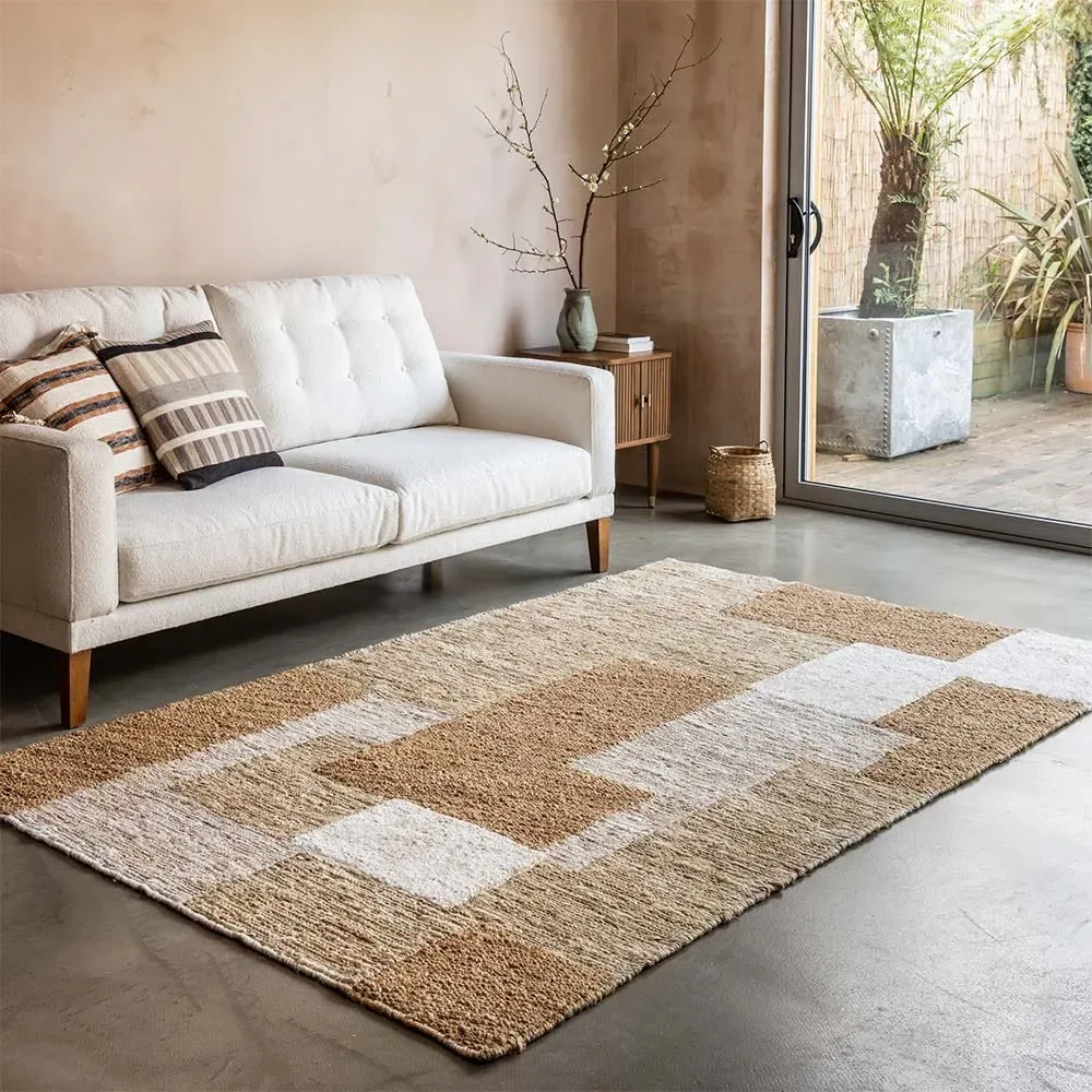 Our Kaya Jute Rug is inspired by the intricate craftmanship of the Tuareg people and their nomadic lifestyle. Traditional geometric and symbolic motifs have been crafted in earthy natural tones to create a textured rug to complement contemporary spaces. Perfect for both modern and traditional interiors, this rug will add warmth and character to your living space. Made from Jute This flatweave rug is crafted from sustainable Jute fibres, which is an incredibly durable and hardwearing material. Jute is made from a plant that grows in India where our rugs are made. Compared to other natural materials such as Sisal or Coir, Jute is soft under foot so you can walk comfortably on it without shoes, or sit on it. Its durable nature makes it suitable for high footfall areas. You don’t get any pilling on Jute rugs but you will see indentations on the rug where you have placed furniture on top. Flatweave Rugs Flatweave rugs tend to be thinner and lighter, so they have less profile if you need to open a door onto them with no obstruction. - Kaya Jute Flatweave Rug 170 X 240cm by Atkin And Thyme, W240 x D170 cm