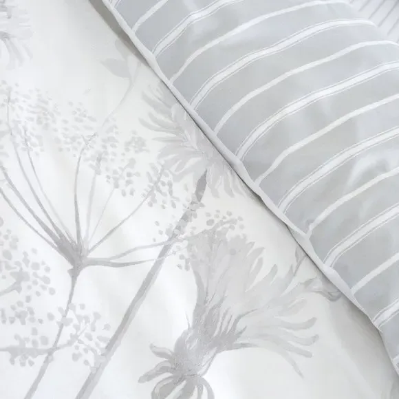 The duvet cover set features hand-painted floral silhouettes inspired by rural countryside charm, with a classic stripe reverse for versatile styling options. Made from a soft 52% polyester and 48% cotton blend, it combines comfort with durability. The reversible design allows you to switch between floral and stripe patterns, while the polycotton fabric ensures easy machine washing and long-lasting quality.