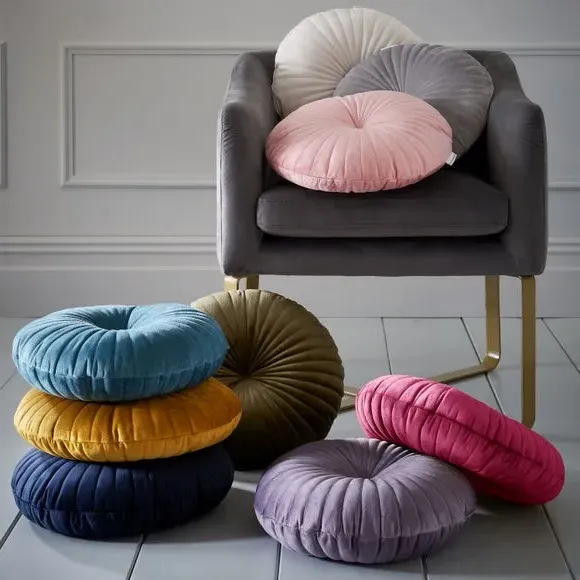 The round cushion combines comfort with style through its soft-touch fabric and central stitch detailing. Its polyester fibre filling delivers plush support, while the navy colour provides versatile appeal. The round design suits various arrangements, and the quality materials ensure durability.