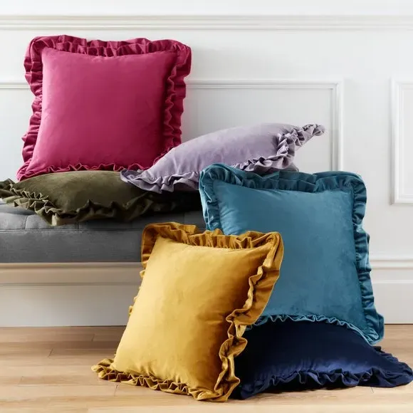 The cushion combines plush comfort with its super-soft velvet composition, featuring distinctive double frill edge detailing. Its polyester fibre filling provides consistent support and maintains shape over time, while the removable cover allows for easy cleaning. The machine-washable construction suits practical use, and the quality materials ensure long-lasting appeal.