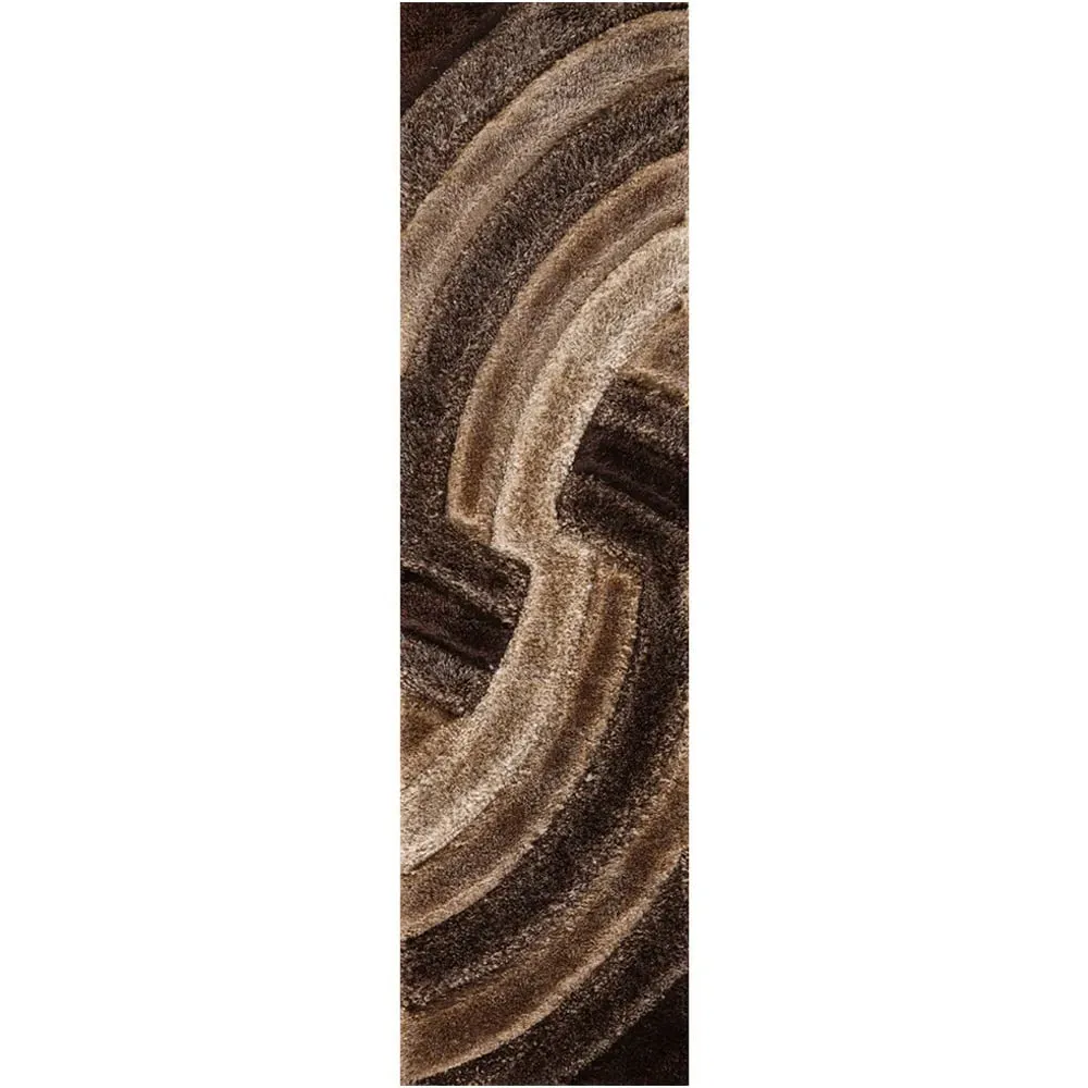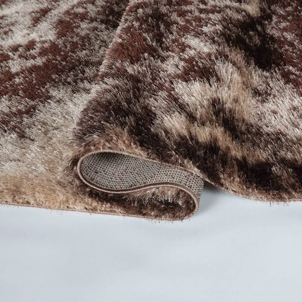The Bronze Swirl Shimmer Shaggy Area Rug offers luxurious comfort with its soft, plush fibres and metallic bronze finish. Its 4cm pile height provides exceptional underfoot cushioning, while the shimmer effect adds visual depth to any space. The 100% polyester construction ensures durability and warmth, maintaining its robust finish through extensive use. W80 x D150 cm.