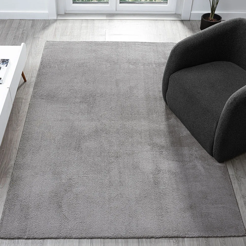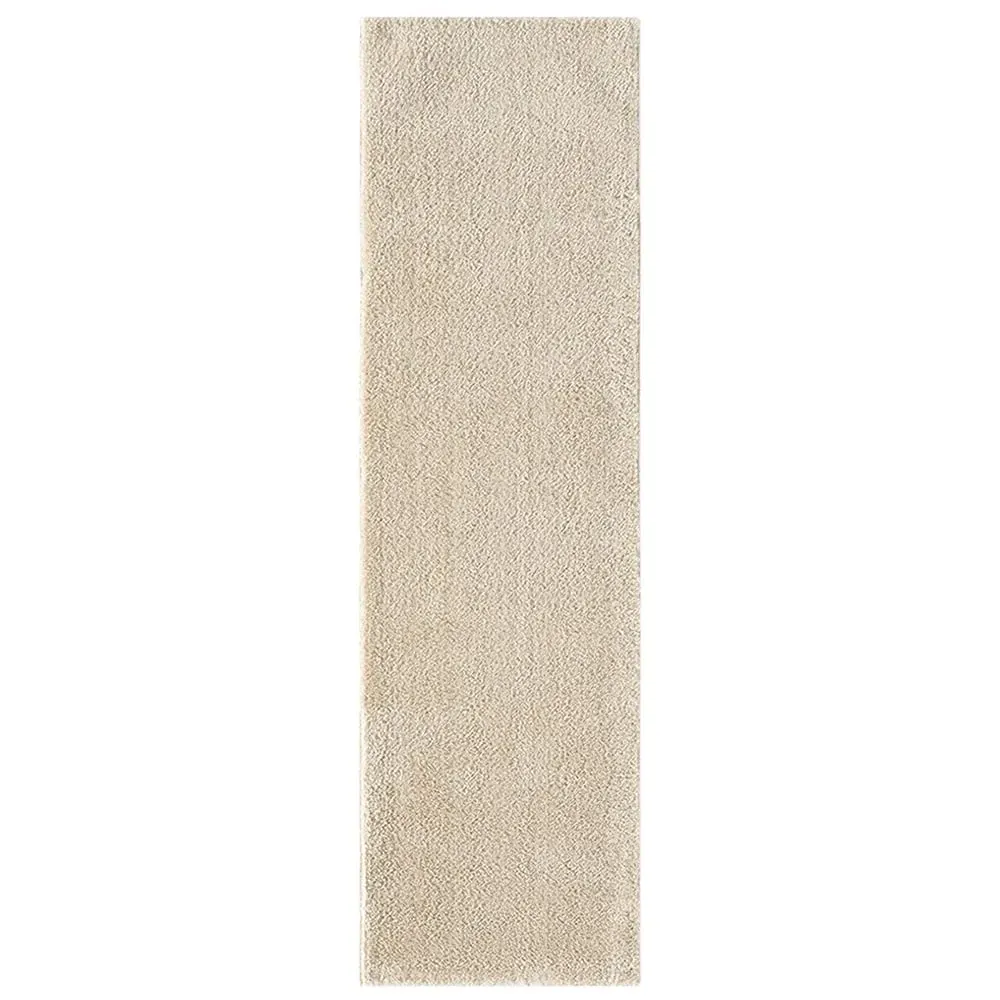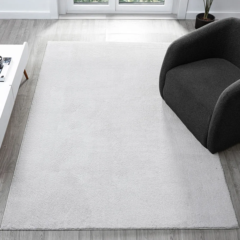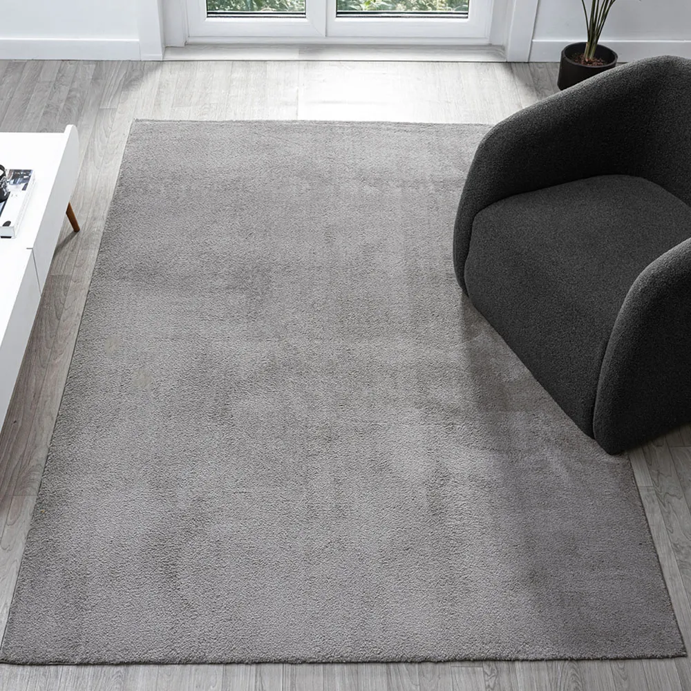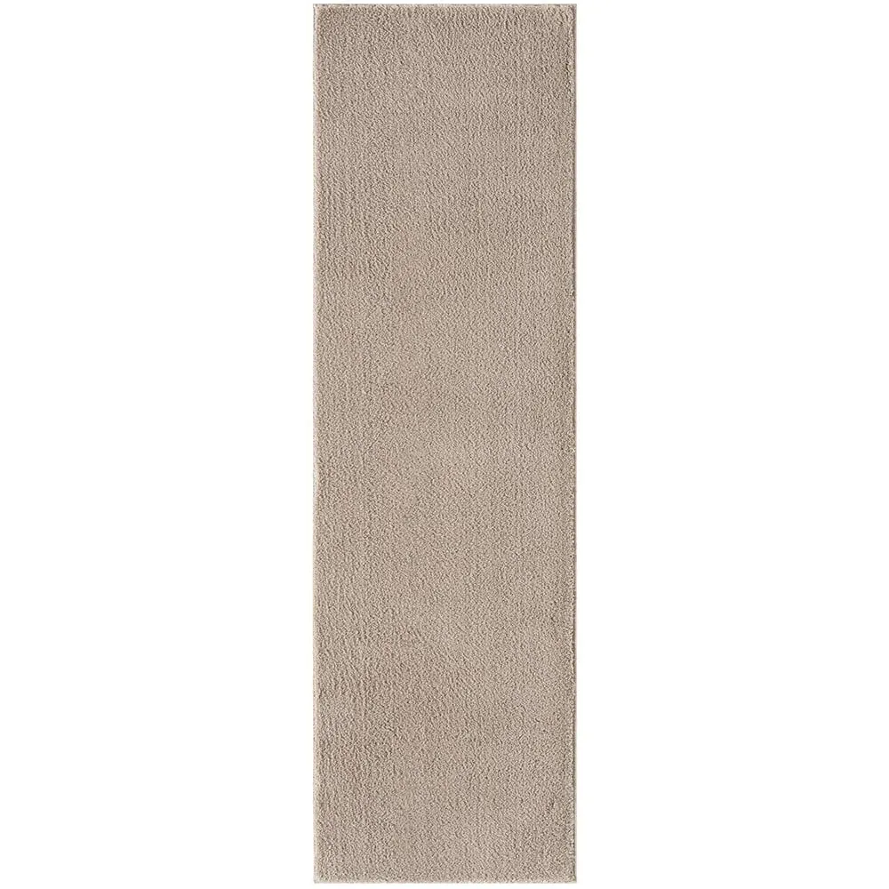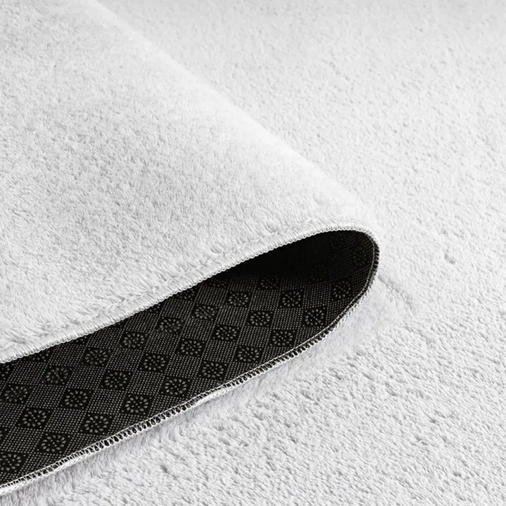 The Comfy rug provides comfort through its 100% polyester material and 22mm low pile that adds warmth underfoot. Its anti-slip PVC dot and felt backing keep the rug firmly positioned on various floor types. The washable construction offers convenient maintenance, while the plain design suits multiple interior settings. W60 x D100 cm.