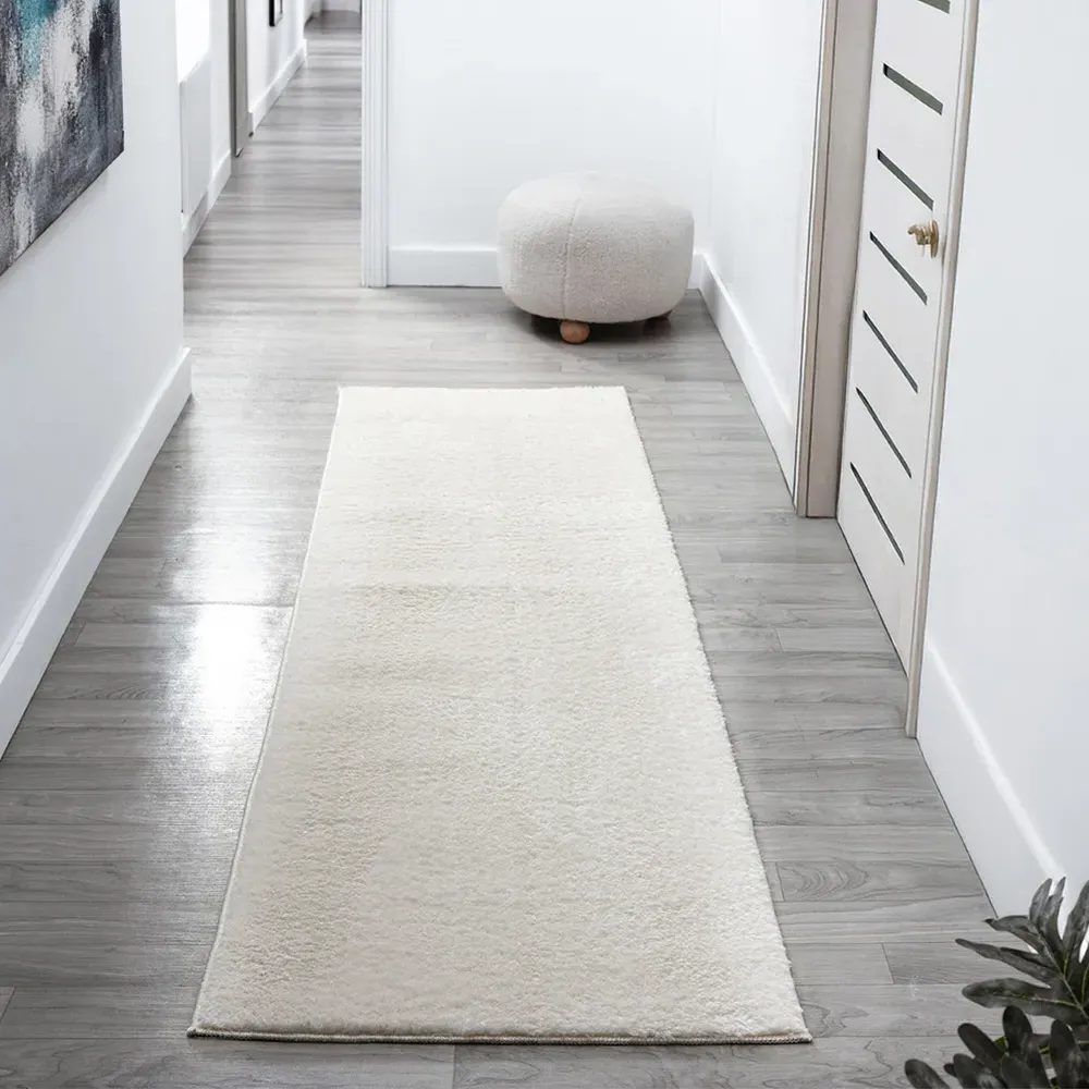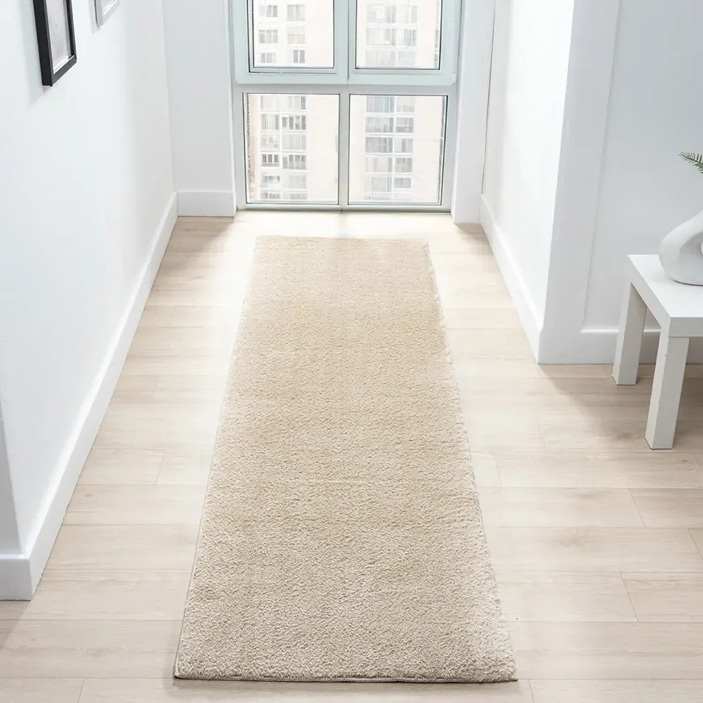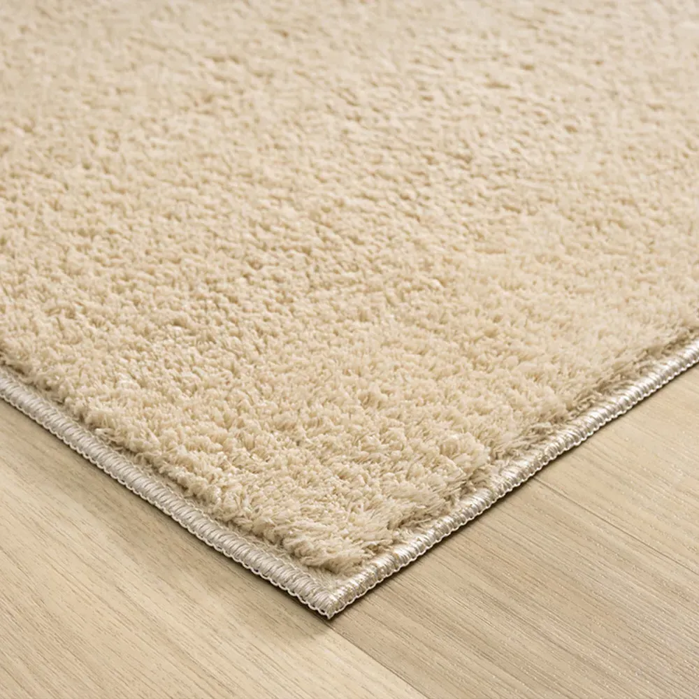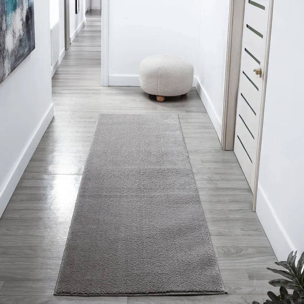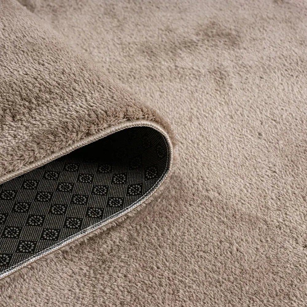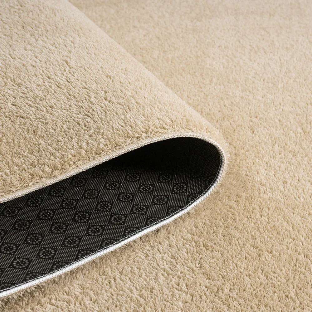 The Comfy rug provides comfort through its 100% polyester material and 22mm low pile that adds warmth underfoot. Its anti-slip PVC dot and felt backing keep the rug firmly positioned on various floor types. The washable construction offers convenient maintenance, while the plain design suits multiple interior settings. W60 x D100 cm.
