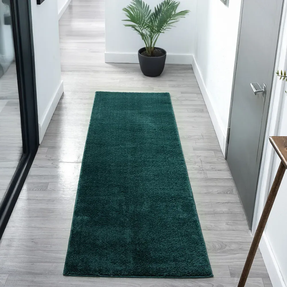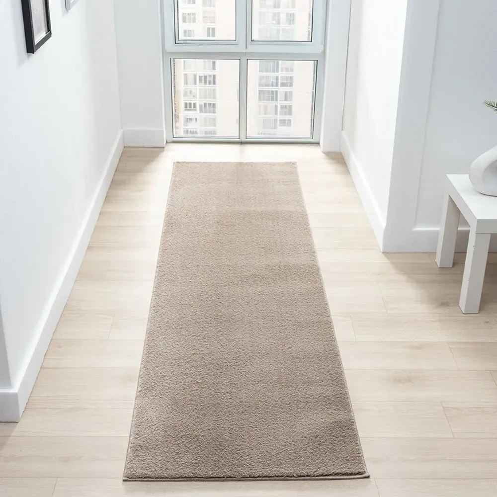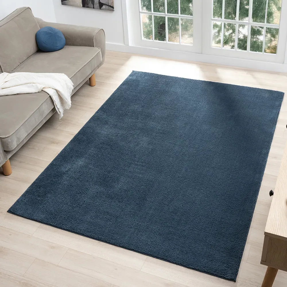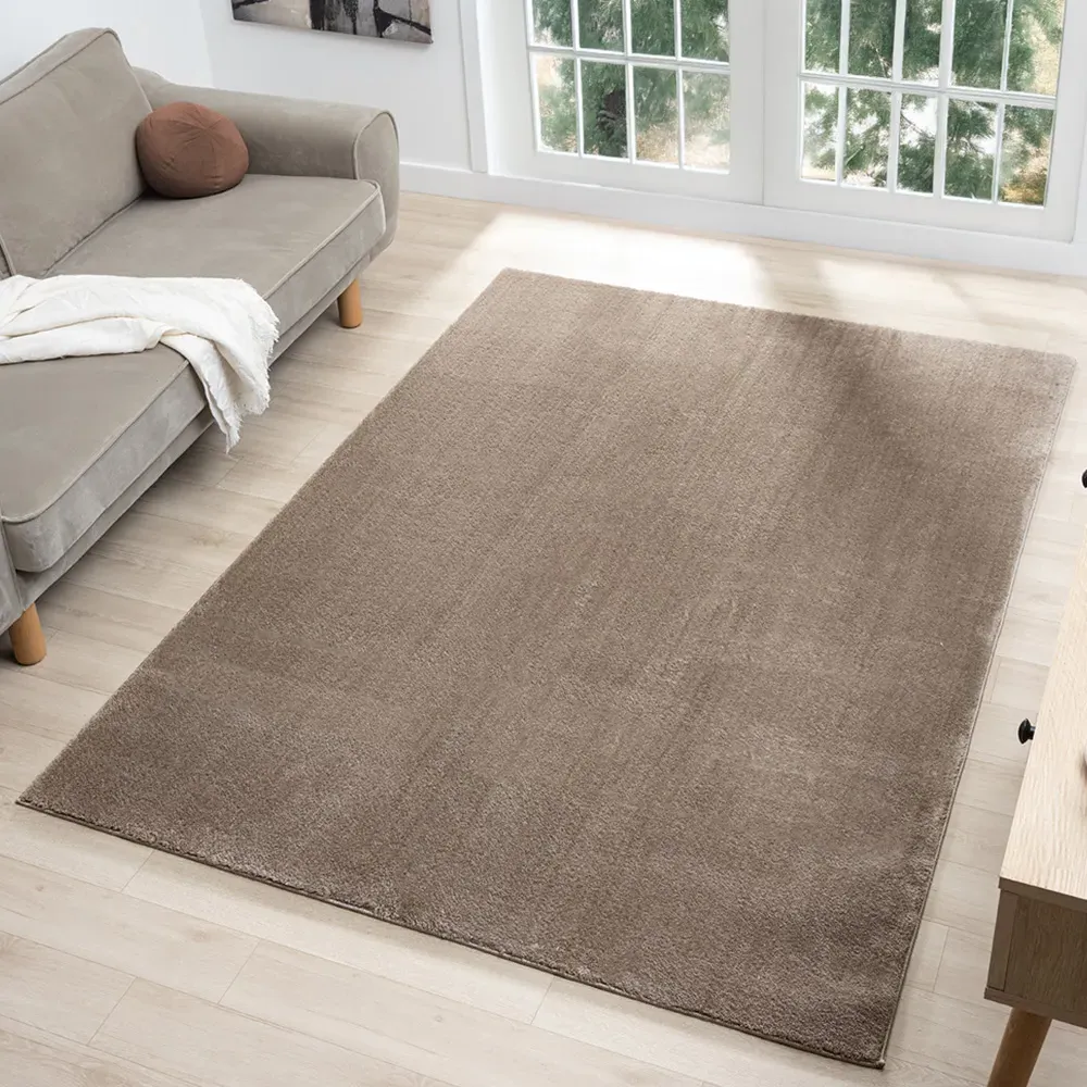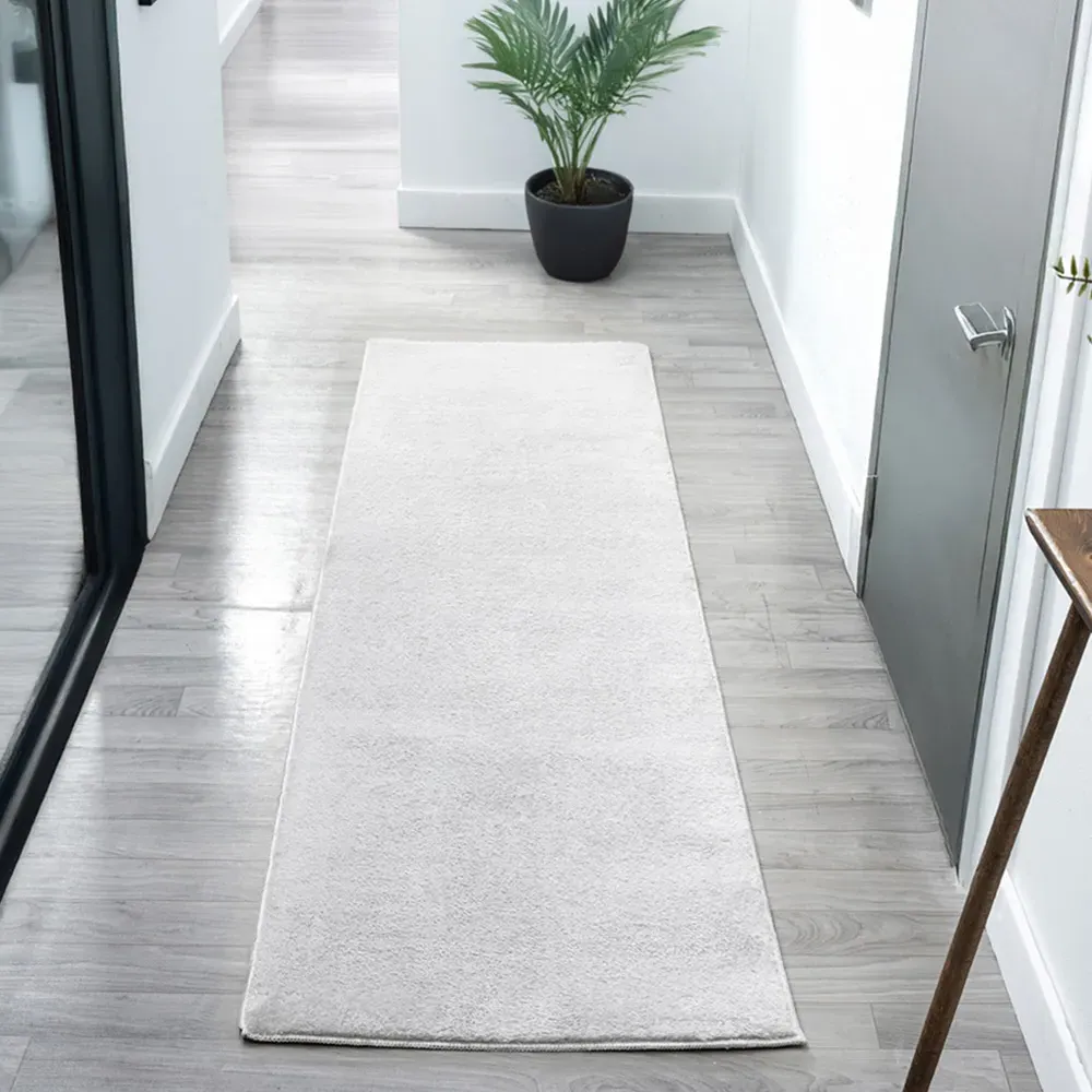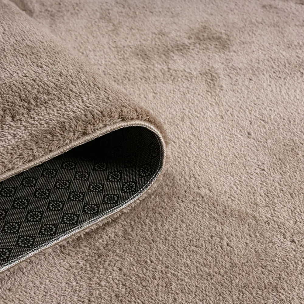 The Comfy rug provides comfort through its 100% polyester material and 22mm low pile that adds warmth underfoot. Its anti-slip PVC dot and felt backing keep the rug firmly positioned on various floor types. The washable construction offers convenient maintenance, while the plain design suits multiple interior settings. W60 x D100 cm.