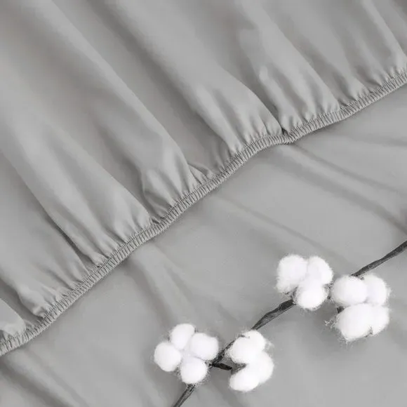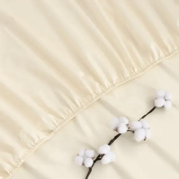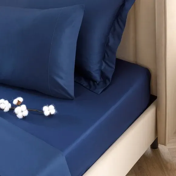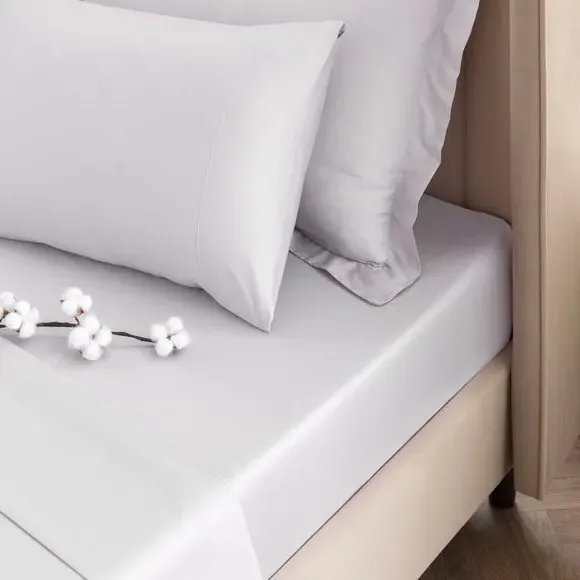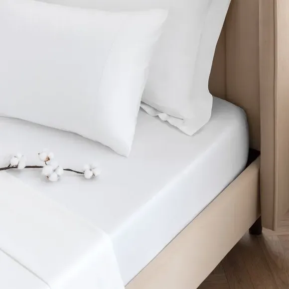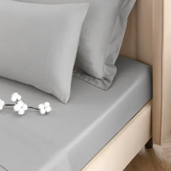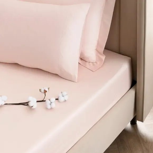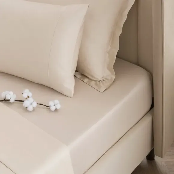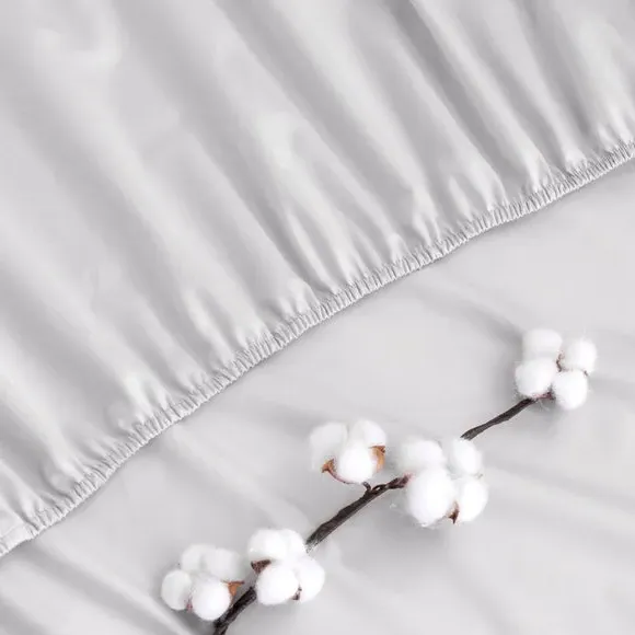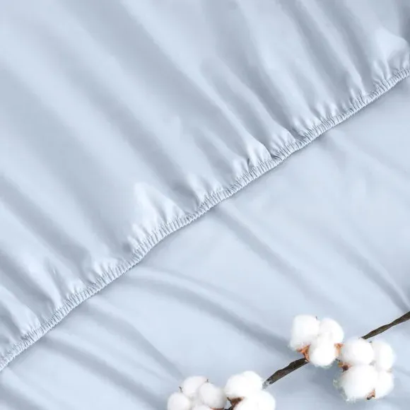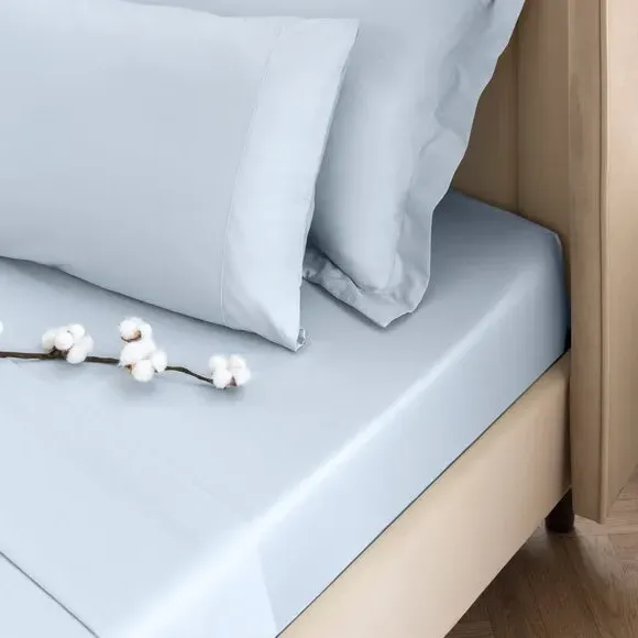 The fitted sheet offers smooth comfort with its 300 thread count cotton sateen construction, featuring an elegant sheen and soft touch. Its elasticated hem provides a secure fit across various mattress depths, while the high-quality weave adds durability and breathability. The sateen finish creates a luxurious drape, and the cotton material ensures long-lasting softness with a 10-year guarantee.