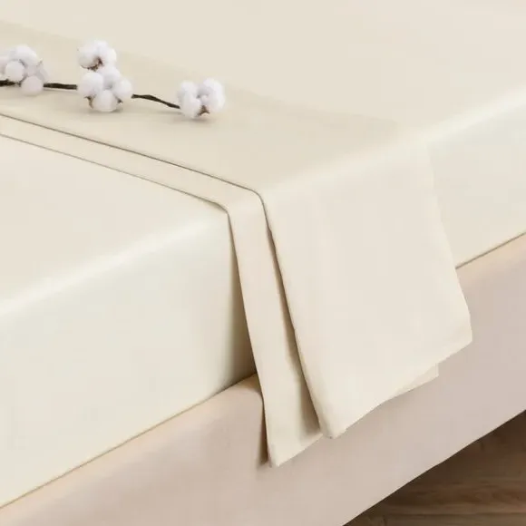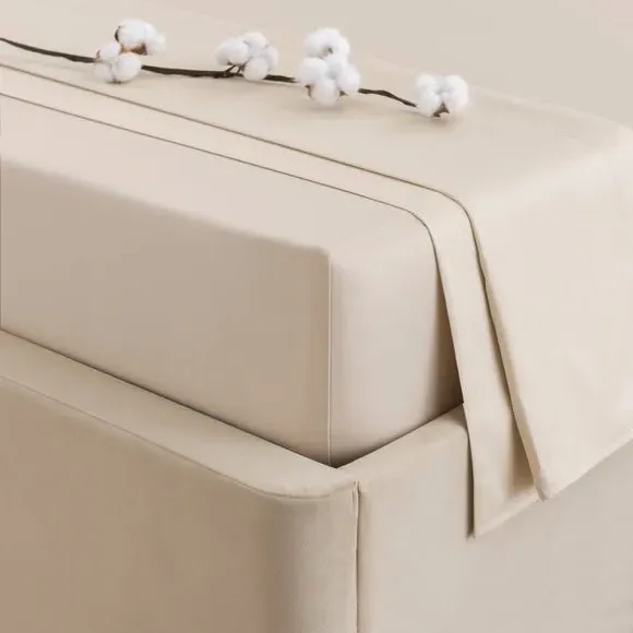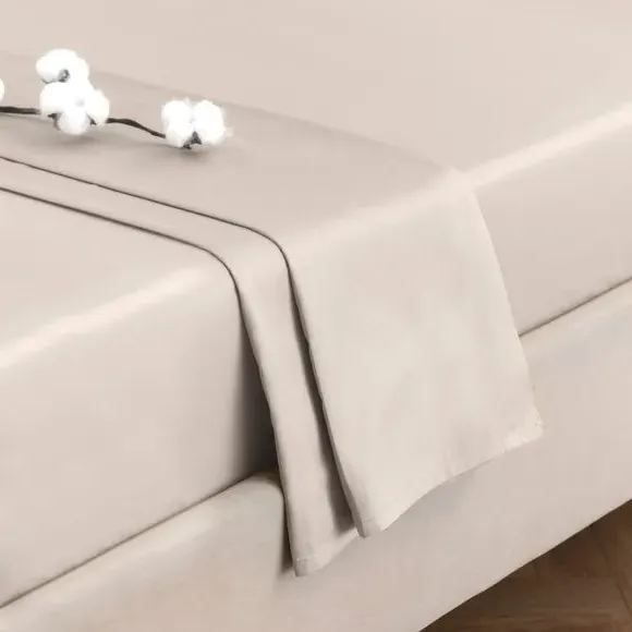 The flat sheet offers smooth comfort with its 300 thread count cotton sateen construction, featuring an elegant natural sheen. Its high-quality weave provides lasting softness, while the sateen finish adds durability and breathability. The premium cotton construction ensures comfortable sleep and comes with a 10-year guarantee for long-term quality.