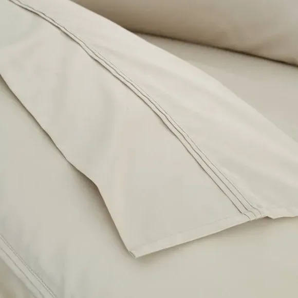 The flat sheet offers luxurious comfort with its 500 thread count cotton sateen construction, featuring a lustrous sheen and supremely soft handle. Its sateen weave provides silky smoothness, while the double pleated detailing adds refined finishing. The fine yarn construction ensures durability and elegant drape for comfortable sleep.