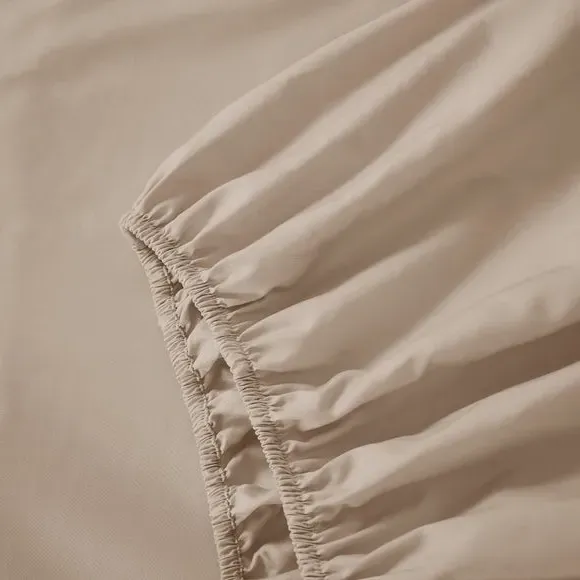 The fitted sheet offers crisp comfort with its 400 thread count Egyptian cotton percale weave. Its smooth handle provides a fresh feel, while the quality construction ensures durability and style. The sheet features various depth options to accommodate different mattress sizes, and the percale weave adds breathability for year-round comfort.