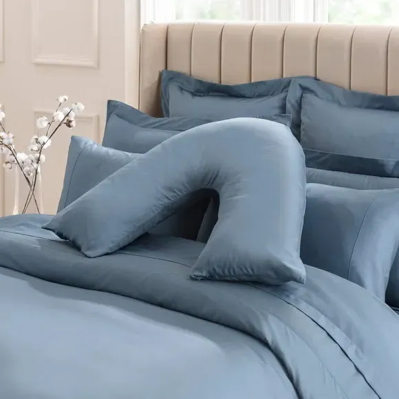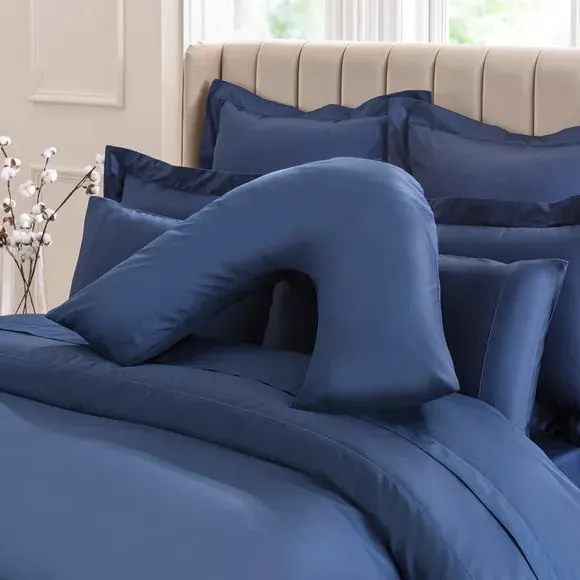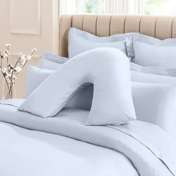 The V-shaped pillowcase offers smooth comfort with its 300 thread count cotton sateen construction. Its high-quality weave provides a soft feel against the skin, while the durable cotton material ensures long-lasting performance. The sateen finish adds a subtle sheen and luxurious texture, and the specialized V-shape design accommodates unique pillow configurations.