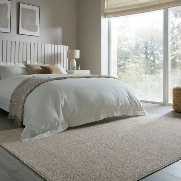 The boucle rug combines cosy texture with practical machine-washable convenience. Its semi-plain bouclé textured pile provides durability and comfort, while the anti-slip backing ensures secure placement. The washable design suits busy households, allowing gentle 30-degree machine cleaning without compromising style. The subtle texture adds warmth and versatility to any space.