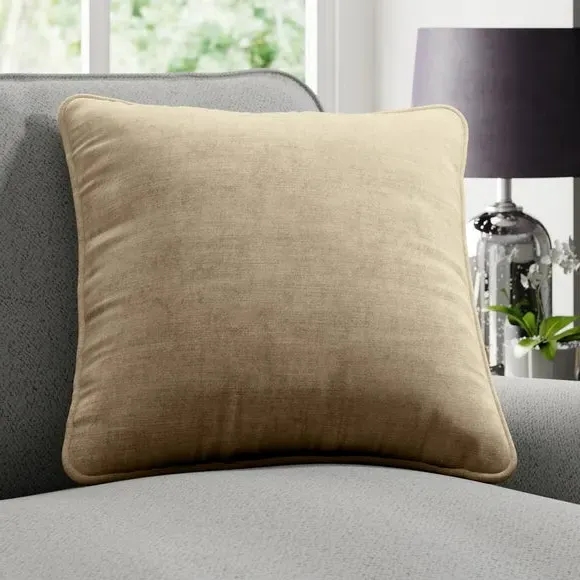 The cushion cover combines luxurious velvet texture with a sophisticated plain design, creating rich visual appeal through its sumptuous material composition. Its made-to-order construction ensures quality craftsmanship, while the choice of plain or piped edge detailing provides styling flexibility. The velvet fabric offers both comfort and durability, and the custom manufacturing process delivers a tailored finish.