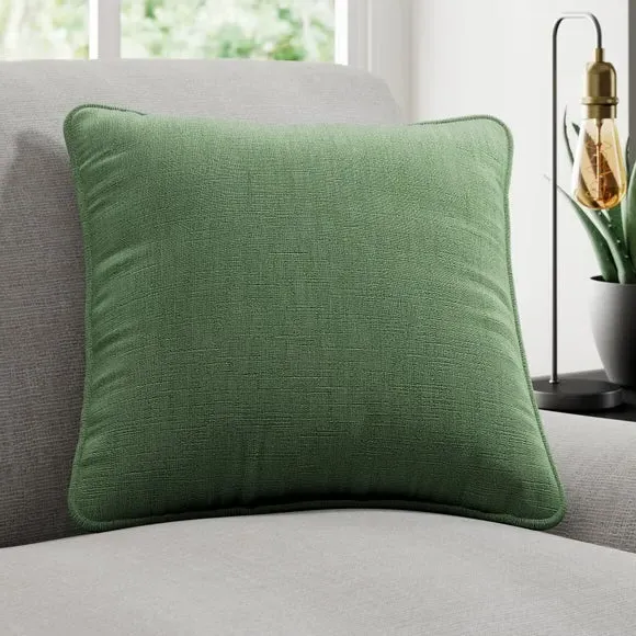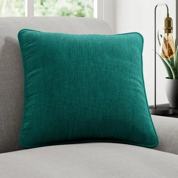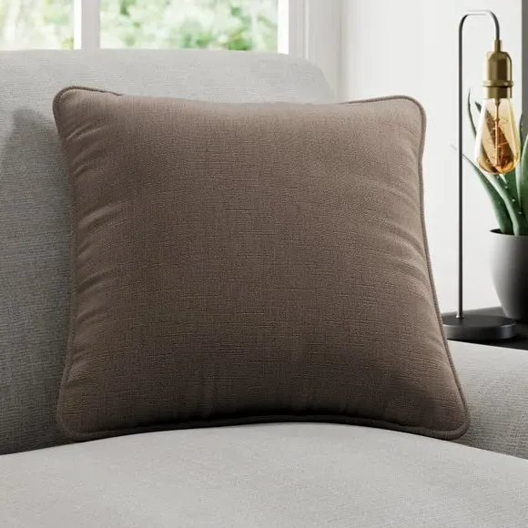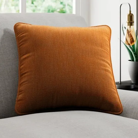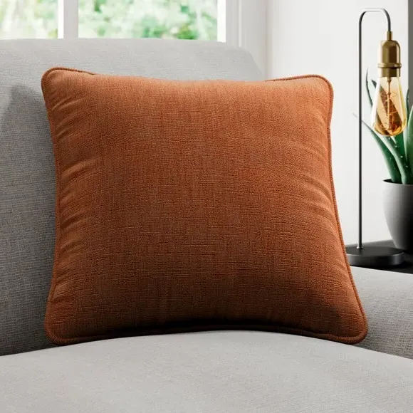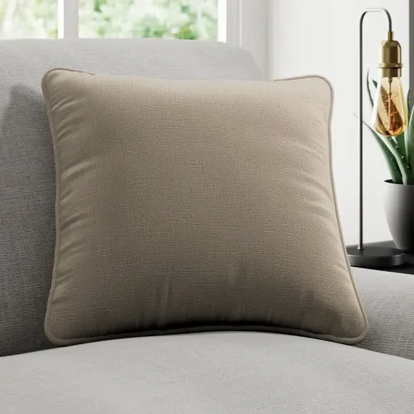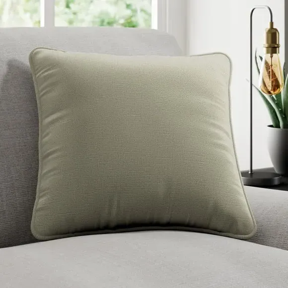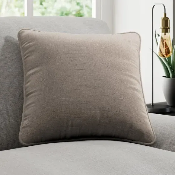 * Quality Cotton and Linen blended composition* Plain design in a choice of stylish colourways* Sold as a single cushion cover – filling sold separately* Available with a plain or piped edge* Coordinating Made to Measure and Made to Order items available to purchase separately Add a touch of understated elegance to your home with the Lienna cushion cover, crafted from a premium cotton and linen blend for a soft, high-quality feel. The plain yet sophisticated design is available in a variety of eye catching colourways, effortlessly complementing any décor. Choose between a sleek plain edge or a refined piped finish to suit your style. Sold as a single cushion cover, with filling available separately, this piece is perfect for adding a touch of luxury to your home. Complete the look with coordinating Made to Measure items, available to purchase separately.