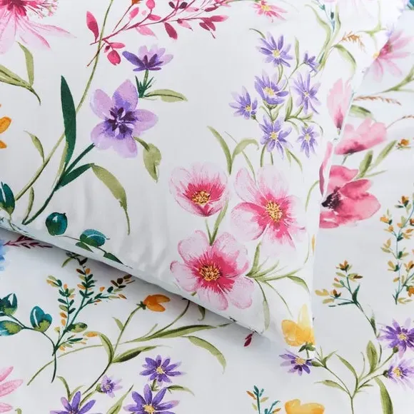 * Soft and breathable Polycotton composition* Colourful floral design* Includes matching pillowcase(s)* Secure button closure Infuse your bedroom with lively floral charm with the Foxley Ditsy duvet cover and pillowcase set. Available in soft and breathable Polycotton this set offers a soft and luxurious feel whilst giving your bedroom an instant uplifting refresh. The colourful floral design adds a playful touch, creating a lively and inviting atmosphere in your sleep space. Each set includes matching pillowcase(s) with a secure button closure, ensuring your duvet stays in place for a restful night's sleep. This product is OEKO-TEX MADE IN GREEN certified, meaning it was produced in OEKO-TEX S Te P certified factories - verifying environmental, social, and chemical standards in the facility. It has also been certified to OEKO-TEX STANDARD 100, the original safety standard for everyday confidence. To offer full visibility, the production stages throughout the supply chain can be traced.