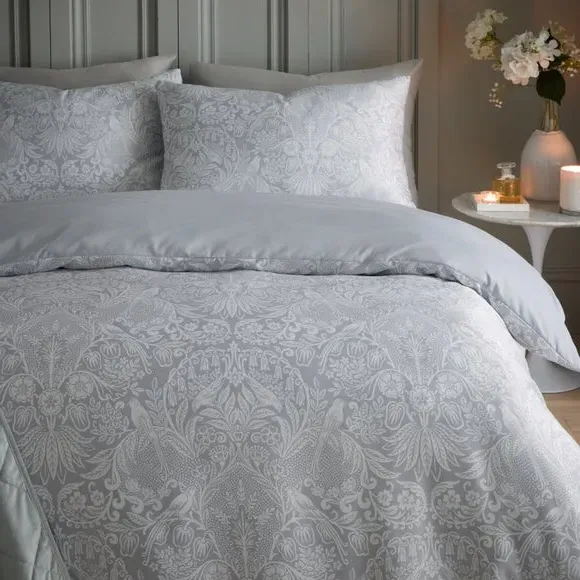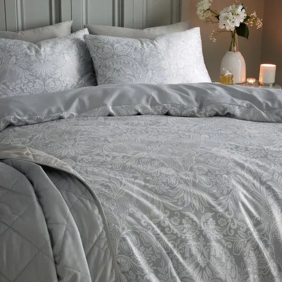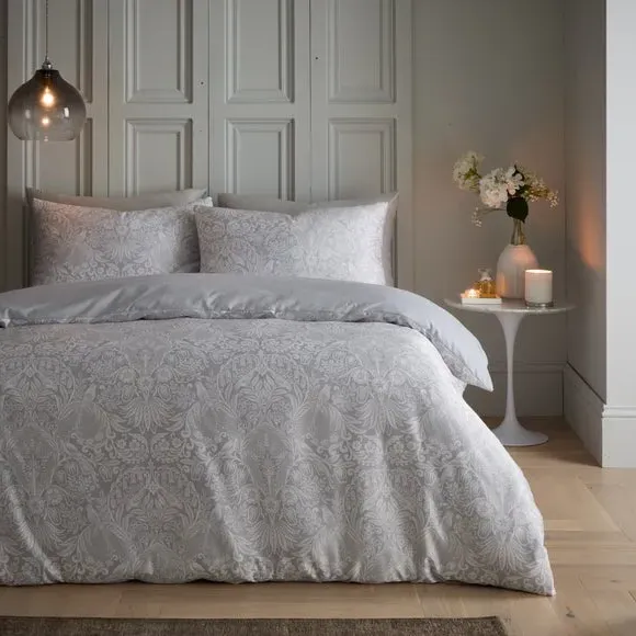 * Includes standard pillowcase(s)* Choose from easy-care polycotton or 100% Cotton material* Secure button closure* Machine washable An elegant floral design fills the face and reverse canvas of this Emelie duvet cover set. With a choice of material crafted from either polycotton or 100% cotton, this set is easy to care for and is fully machine washable. The duvet cover set has been finished with a button closure which helps secure the cover around the duvet whilst in use. This collection is verified by OEKO-TEX and independently tested for harmful substances as well as manufactured using sustainable processes under socially responsible working conditions.