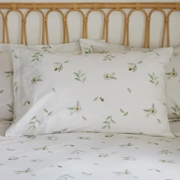 The duvet cover set features a reversible floral design with delicate willow trail print and bee motifs on one side, complemented by a ditsy floral reverse. Crafted from soft polycotton blend or 100% cotton material, it provides comfort and breathability for restful sleep. The secure button closure ensures the duvet stays in place throughout the night, while the included matching standard pillowcases complete the coordinated look. Machine washable for easy care and maintenance.