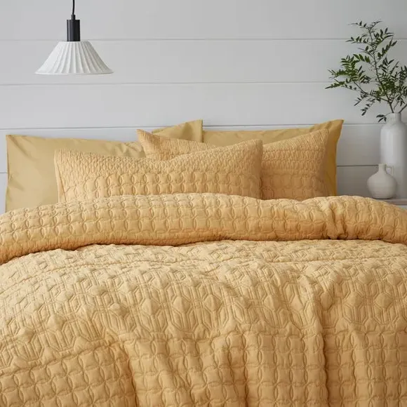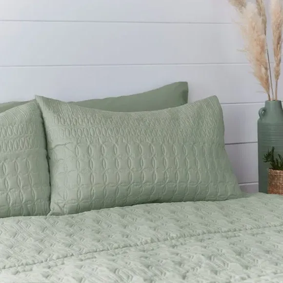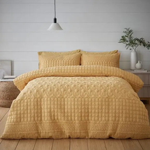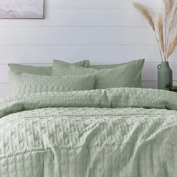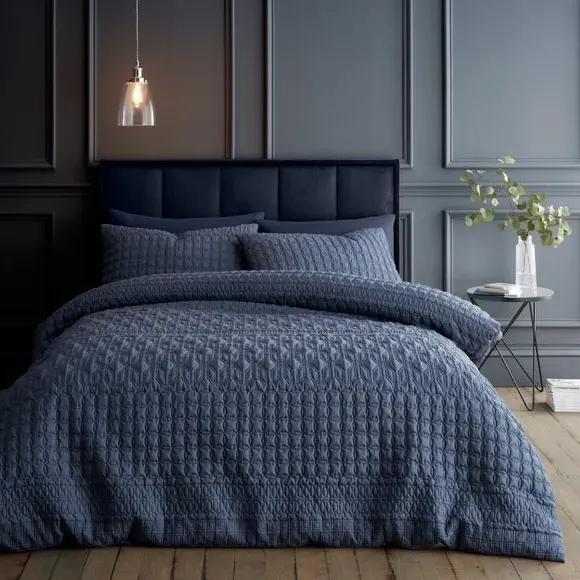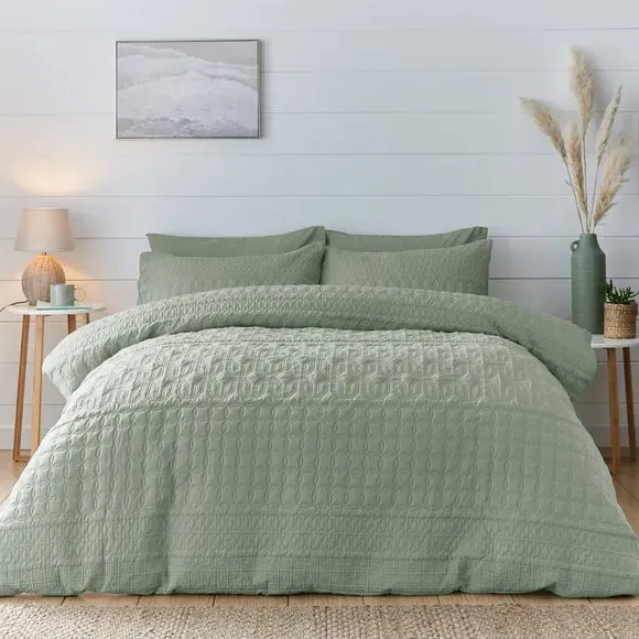 * Includes standard pillowcase(s)* Face: 100% polyester, reverse: polycotton* Button fastening - secures duvet easily* Machine washable Billie is a beautiful semi-plain that has been crafted with a gorgeous pinsonic design. This Emerald duvet cover and pillowcase set is perfect for a global bedroom style. The face is crafted from a 100% polyester but the reverse is crafted with a soft and crisp polycotton blend, perfect for you to lay under. Fully machine washable. A matching oxford pillowcase is also available. Please note: due to the design and makeup of this fabric, the design may vary between each duvet cover set. This collection is verified by OEKO-TEX and independently tested for harmful substances as well as manufactured using sustainable processes under socially responsible working conditions.