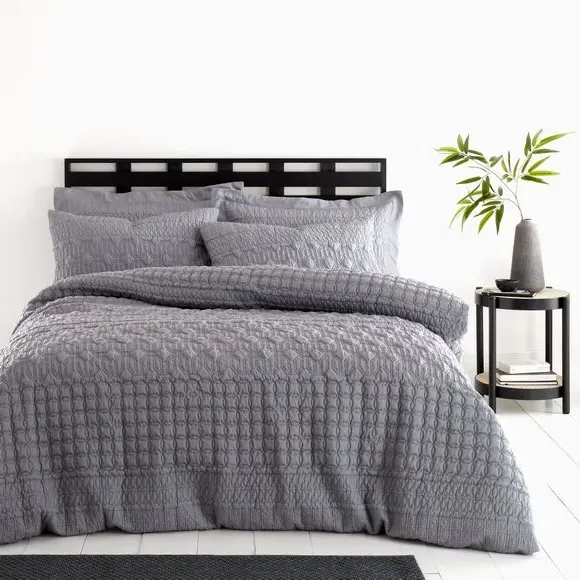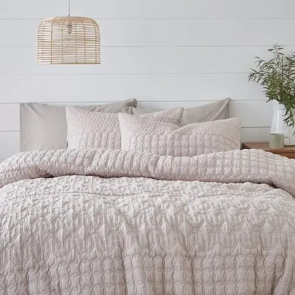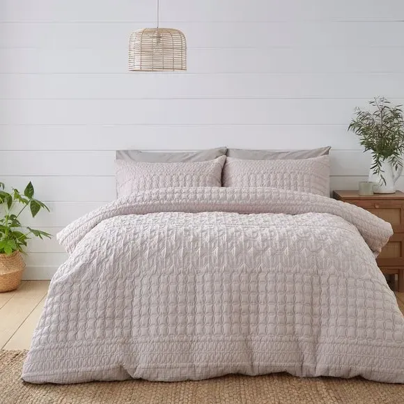 The duvet cover set features a semi-plain design with pinsonic detailing, combining a 100% polyester face with a soft polycotton reverse. Its button fastening secures the duvet easily, while the dual-material construction provides comfort and durability. The set includes standard pillowcases and offers machine washable convenience. OEKO-TEX verified for safety and manufactured using sustainable processes.