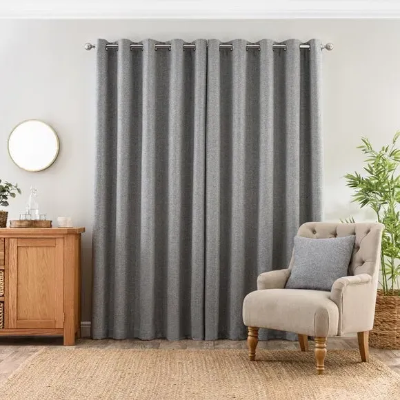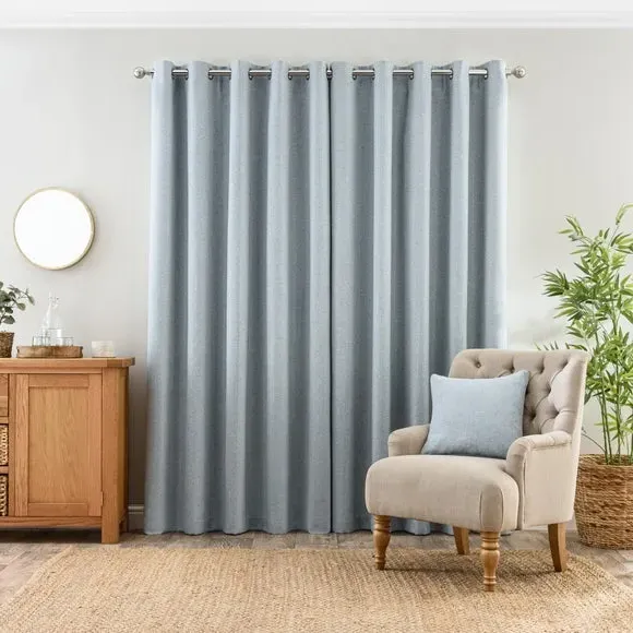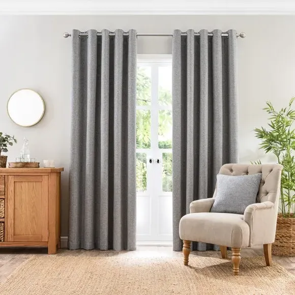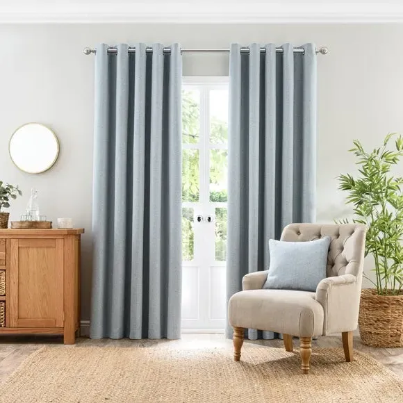 * 1 pair - includes 2x curtain panels* Eyelet header* Made from 100% recycled polyester* Available in 9 sizes Welcoming the Jordan Eyelet Curtains, an elegant addition to your home that will elevate your space with modern charm and contemporary flair. Designed with meticulous attention to detail, these curtains are perfect for those who want a stylish atmosphere. Boasting a modern eyelet header, our Jordan Eyelet Curtains offer a hassle-free experience when it comes to installation. With this convenient design, you can effortlessly slide the curtains onto your curtain pole, allowing for smooth and easy opening and closing. Crafted from high-quality recycled polyester, these durable curtains are luxurious in both appearance and touch. Known for its excellent resistance to wrinkles and fading, the polyester composition will ensure that your curtains maintain their pristine appearance for years to come. To ensure the best fit for your windows, we offer these curtains in a range of nine different sizes. With such variety available, you can easily find the ideal dimensions to suit your needs and achieve a tailored look for your space. A matching cushion cover is available to purchase separately. The size of the curtains shown is the size of 1 panel, you will receive 2 panels of this size. Choose the width that is closest to your pole length for full look.