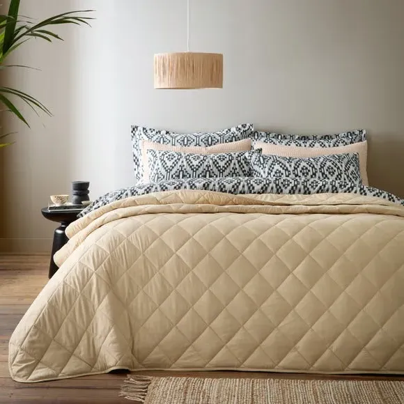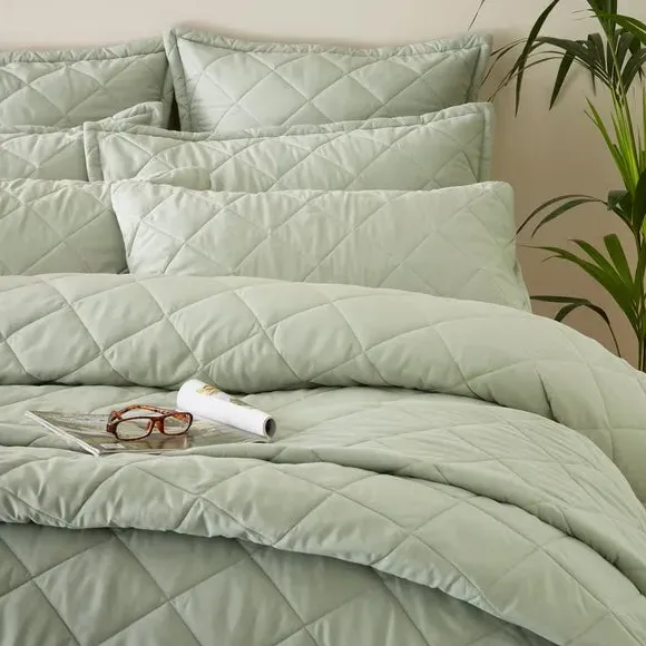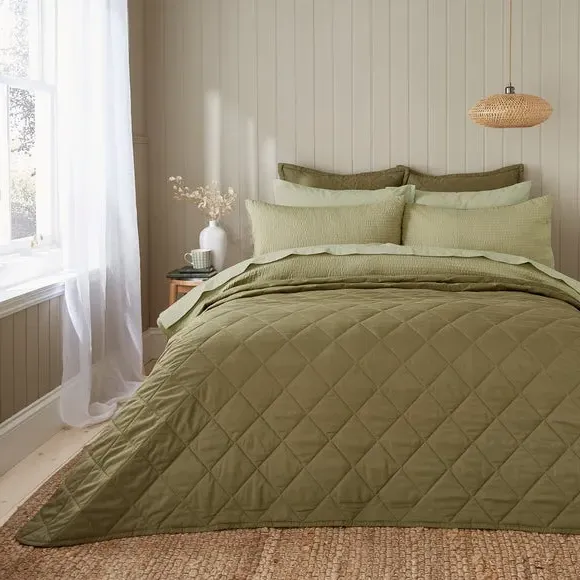 The quilted bedspread offers sustainable comfort with its recycled polyester construction, featuring a classic plain design. Its quilted texture provides softness and warmth, while the machine washable fabric ensures easy maintenance. The OEKO-TEX certified material meets environmental and safety standards, and the durable construction adds long-lasting quality.