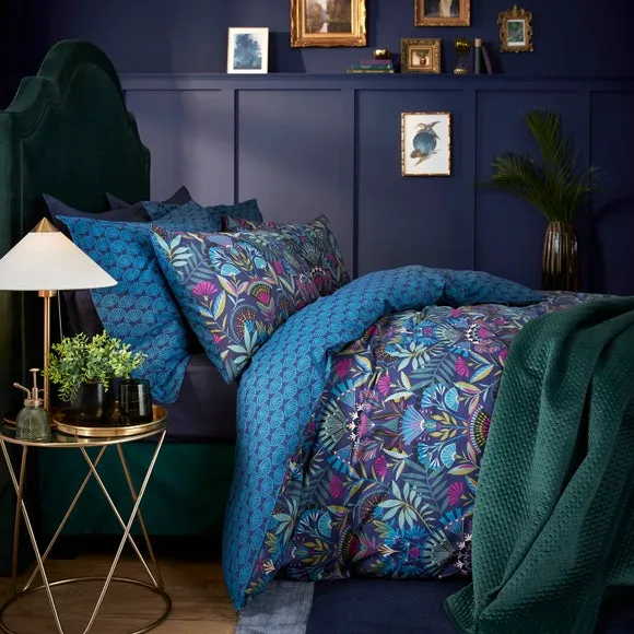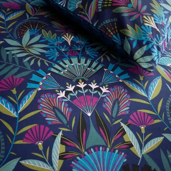 * Made from 100% cotton* Reversible design* Secure button closure* Includes standard pillowcase(s)* Machine washable* Coordinating Oxford pillowcases available to purchase separately Adorned with a colourful floral print, the Lucille duvet cover and pillowcase set has been made from 100% cotton on a reversible style, a colourful floral print on one side and a geometric fan design on the reverse, giving you two design options in one bedding set! It comes complete with matching reversible pillowcase(s) for a complete bedding look and is finished with a secure button closure to give you an uninterrupted night sleep. It's easy to clean by simply popping in the washing machine. Good things come to those who coordinate, so why not pair this bedding set with the matching Lucille Oxford pillowcase that is available to purchase separately! This product is OEKO-TEX MADE IN GREEN certified, meaning it was produced in OEKO-TEX S Te P certified factories - verifying environmental, social, and chemical standards in the facility. It has also been certified to OEKO-TEX STANDARD 100, the original safety standard for everyday confidence. To offer full visibility, the production stages throughout the supply chain can be traced.