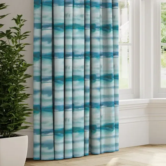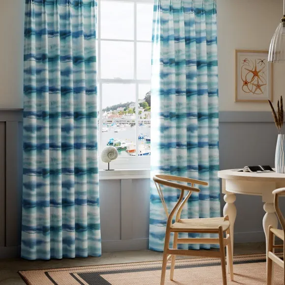 * Selection of header types available* Choice of linings options available* Made to your measurements* Sold as a pair Let the beauty of Fjord curtains wash over you. Made from 100% cotton and crafted in the UK, these web-exclusive curtains offer a calming coastal design. Dry clean only. Please note: you measure for pinch pleat curtains in the same way as pencil pleat curtains**Online exclusive:** This product is only available to order online. Our expert virtual consultants can provide advice on measuring/fitting and style tips and our free samples can be ordered online to be delivered straight to your home to help you choose a fabric that's right for you. Once you're happy, simply place your order online and we'll do the rest. Please note: If your measured width is over 124cm your curtains will come with a fabric join to provide the full width required.