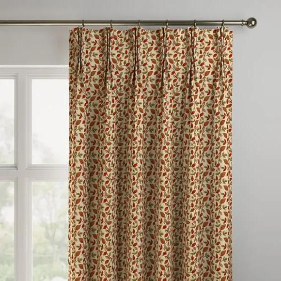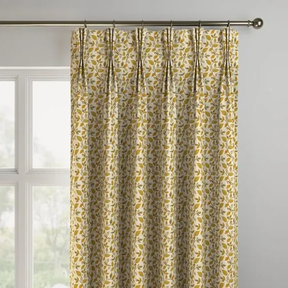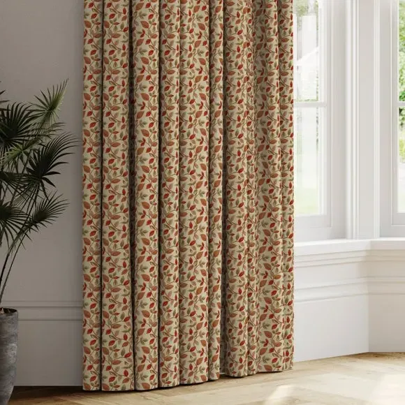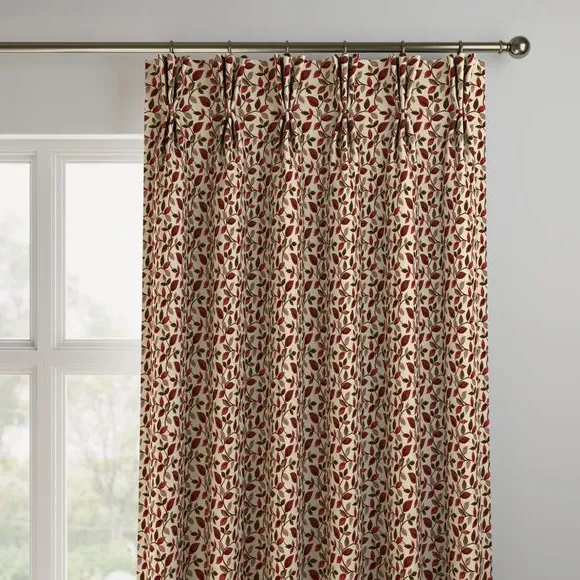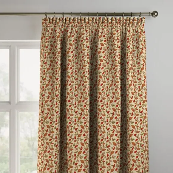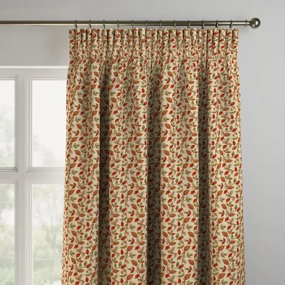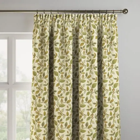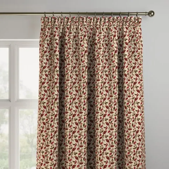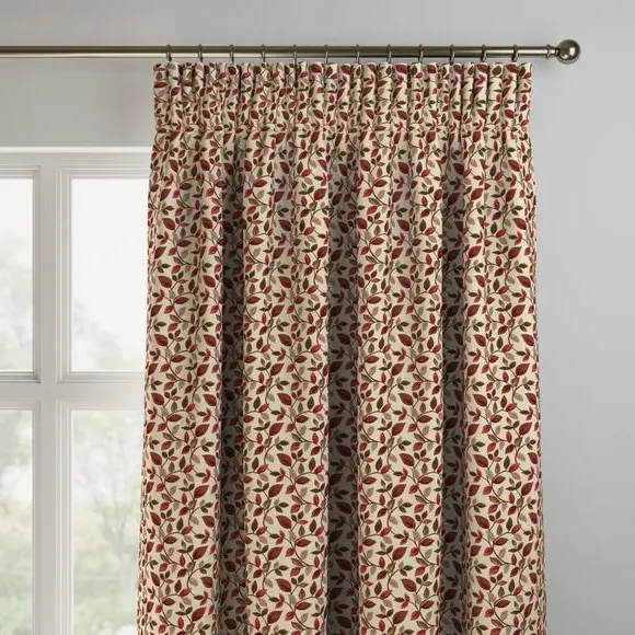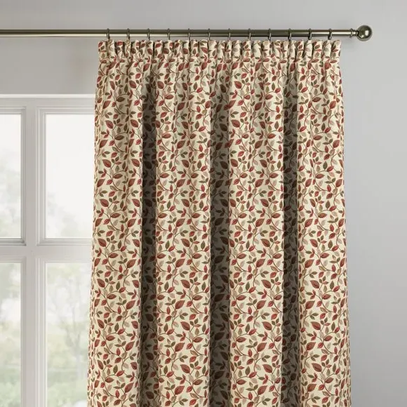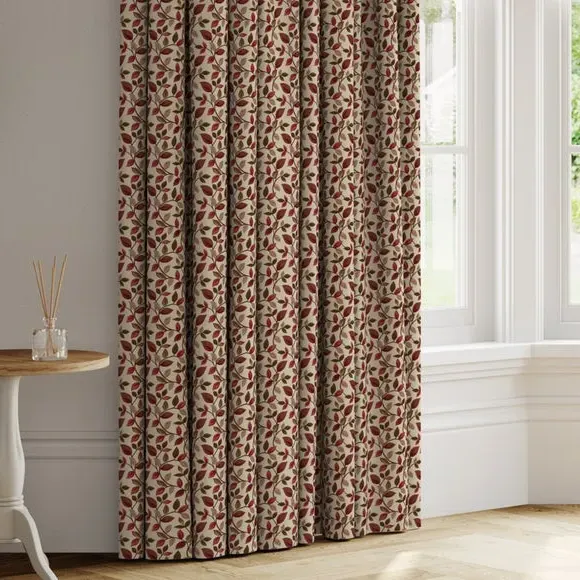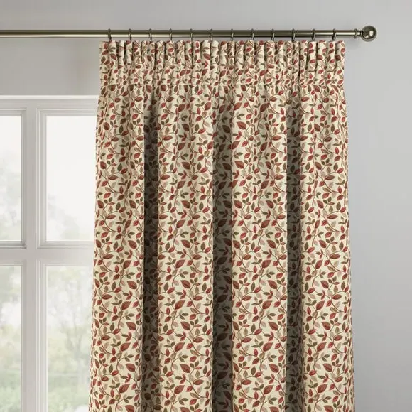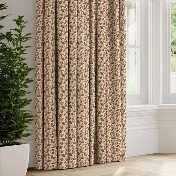 The curtains feature an elegant floral design with custom sizing to fit your windows precisely. Each panel is crafted with pinch pleat heading for structured hanging, while the fabric construction ensures durability and light control. The made-to-measure service includes expert consultation for accurate fitting. Panels over 124cm width include fabric joins to achieve the required dimensions.