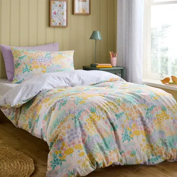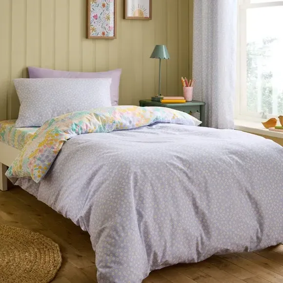 * Includes Standard Pillowcase(s)* Bold & Playful Design* Reversible - 2-in-1* Made from 100% Cotton* Soft, Cosy, & Comfortable* Secure Button Fastening Transform your child’s bedroom into a serene retreat with the Meadows 100% Cotton Reversible Duvet Cover and Pillowcase Set. Featuring an enchanting scene filled with delicate meadows and soft grasses with a ditsy floral print reverse, this set is crafted from 100% cotton and is finished with a secure button fastening.