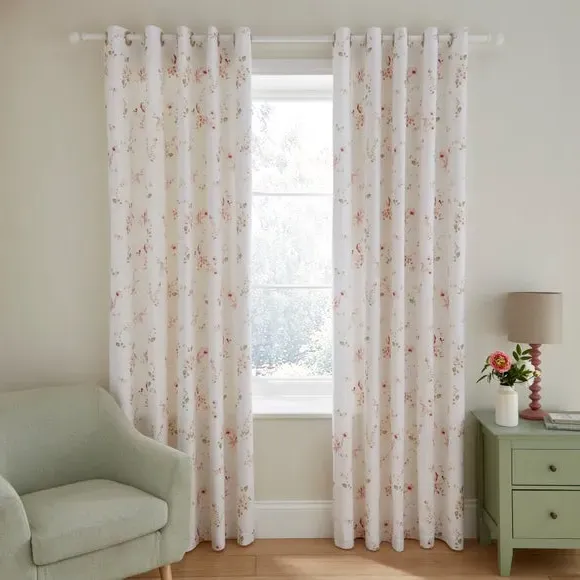 * Includes 2 x curtain panels* Polycotton composition* Blackout Lining* Smart Eyelet Header* Available in 3 Sizes* Co-ordinating bedding and fitted sheet available Evoke the timeless elegance of a blossoming garden with the charming Nola Floral curtains range. These curtains transform your bedroom into a sanctuary of floral serenity, with trailing watercolour florals adding refined sophistication. Featuring a blackout lining and smart eyelet header, they provide both style and functionality. Pair them with our coordinating bedding for a cohesive and elegant look. This product is OEKO-TEX MADE IN GREEN certified, meaning it was produced in OEKO-TEX S Te P certified factories - verifying environmental, social, and chemical standards in the facility. It has also been certified to OEKO-TEX STANDARD 100, the original safety standard for everyday confidence. To offer full visibility, the production stages throughout the supply chain can be traced.